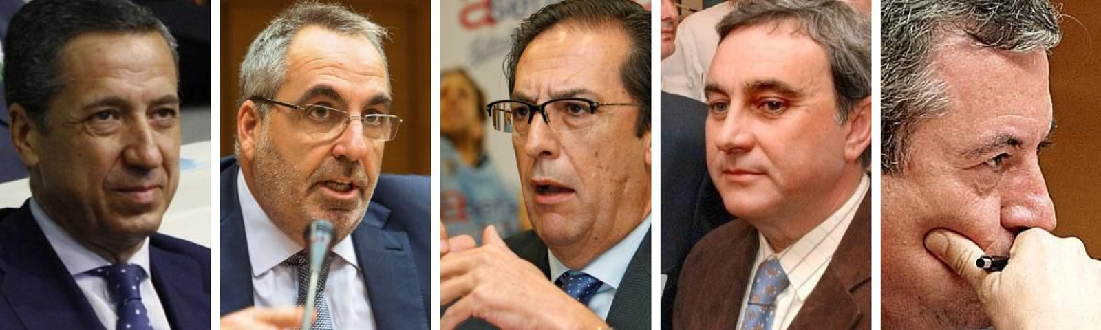 D'esquerra a dreta, Eduardo Zaplana, Vicente Cotino, Juan Francisco García, Joaquín Barceló i Francisco Grau