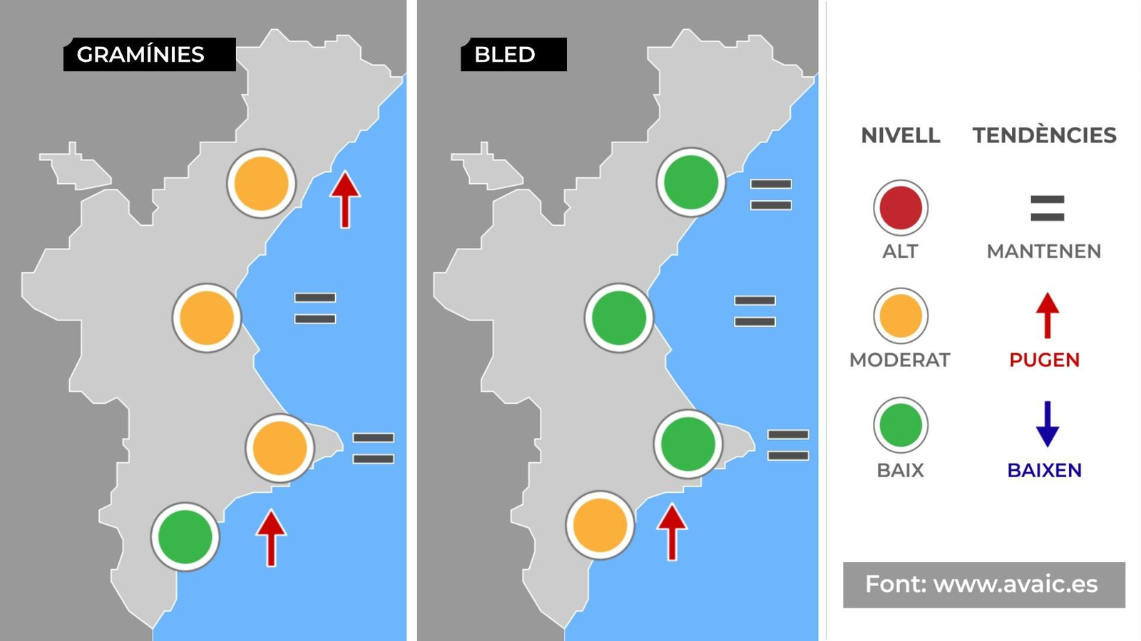 L'Associació Valenciana d'Al·lergologia i Immunologia Clínica (Avaic) fa un seguiment detallat de la concentració dels diferents tipus de pol·len que poden afectar la població.