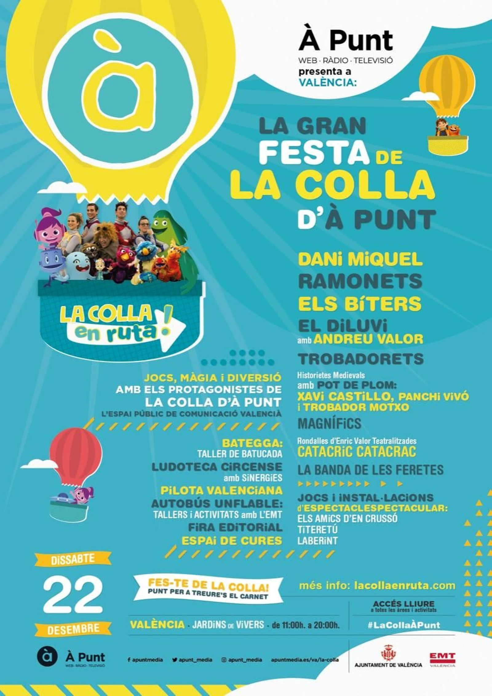 Està previst que el festival La Colla en Ruta recórrega durant els pròxims mesos diferents pobles i ciutats del territori amb l’objectiu d’oferir a les famílies jornades educatives i d’oci amb els nous personatges i les noves propostes dels mitjans públics valencians.