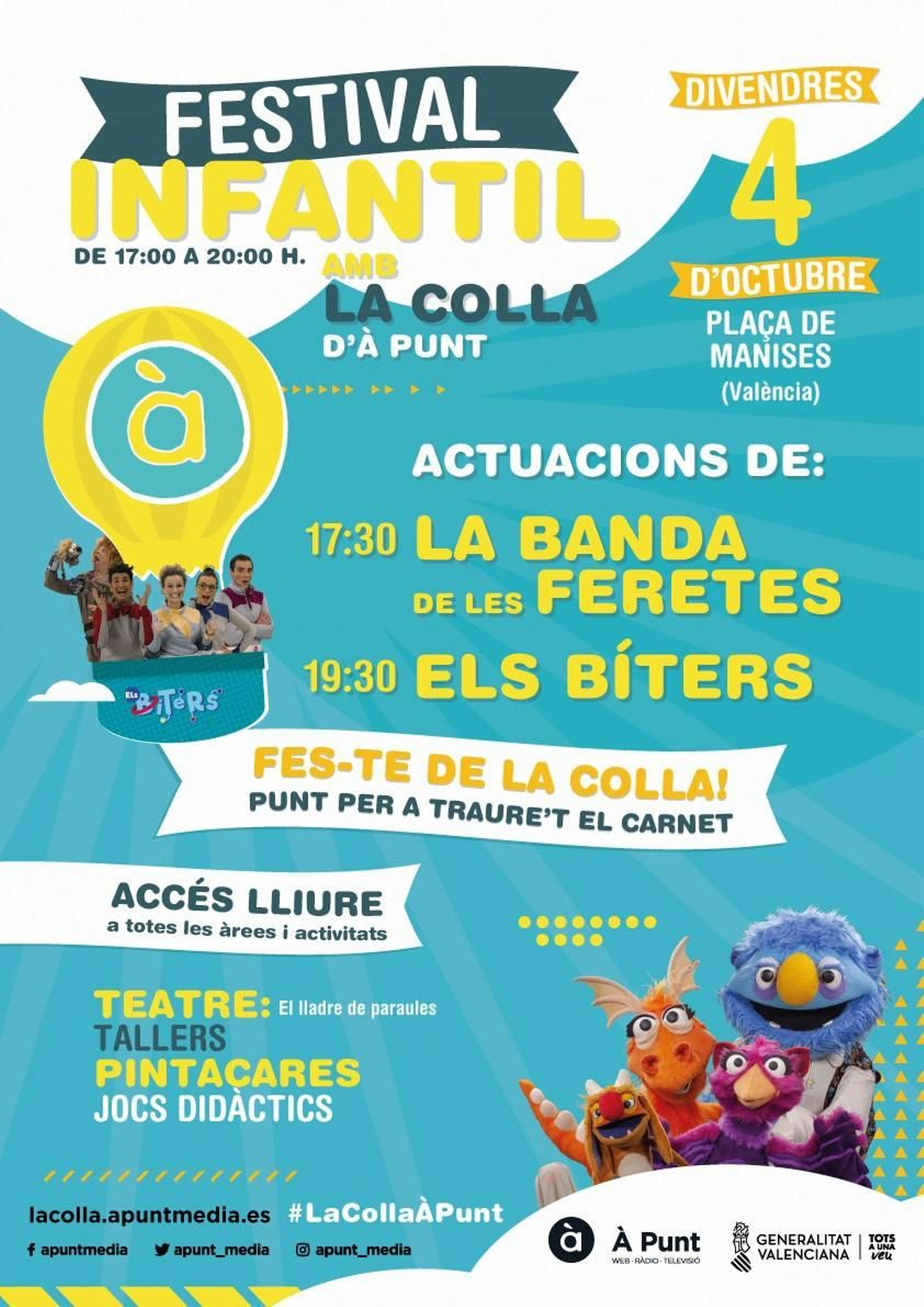 D’altra banda, amb motiu del Nou d’Octubre, aquesta vesprada estan previstes a la plaça de Manises de València les actuacions de La Banda de les Feretes, a les 17:30 hores, i d’Els Bíters, a les 19:30 hores. Els més menuts també podran fer-se el carnet de La Colla i rebran un detallet. L’accés és lliure.