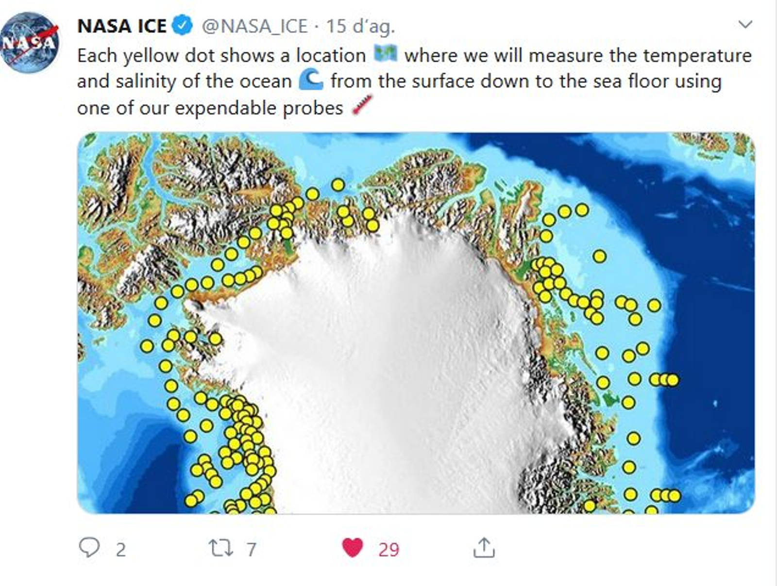 La missió ha instal·lat un gran nombre de sondes al llarg de la costa de Groenlàndia per a mesurar la temperatura i la salinitat de l'aigua del mar. Enguany la pèrdua de gel s'ha accelerat respecte d'anys anteriors com a conseqüència de l'onada de calor del juliol passat.