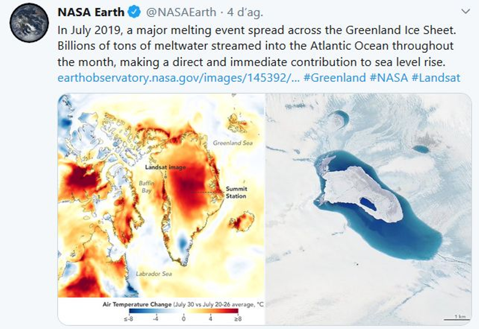 La pèrdua de gel a Groenlàndia arriba a màxims durant l'estiu d'enguany.