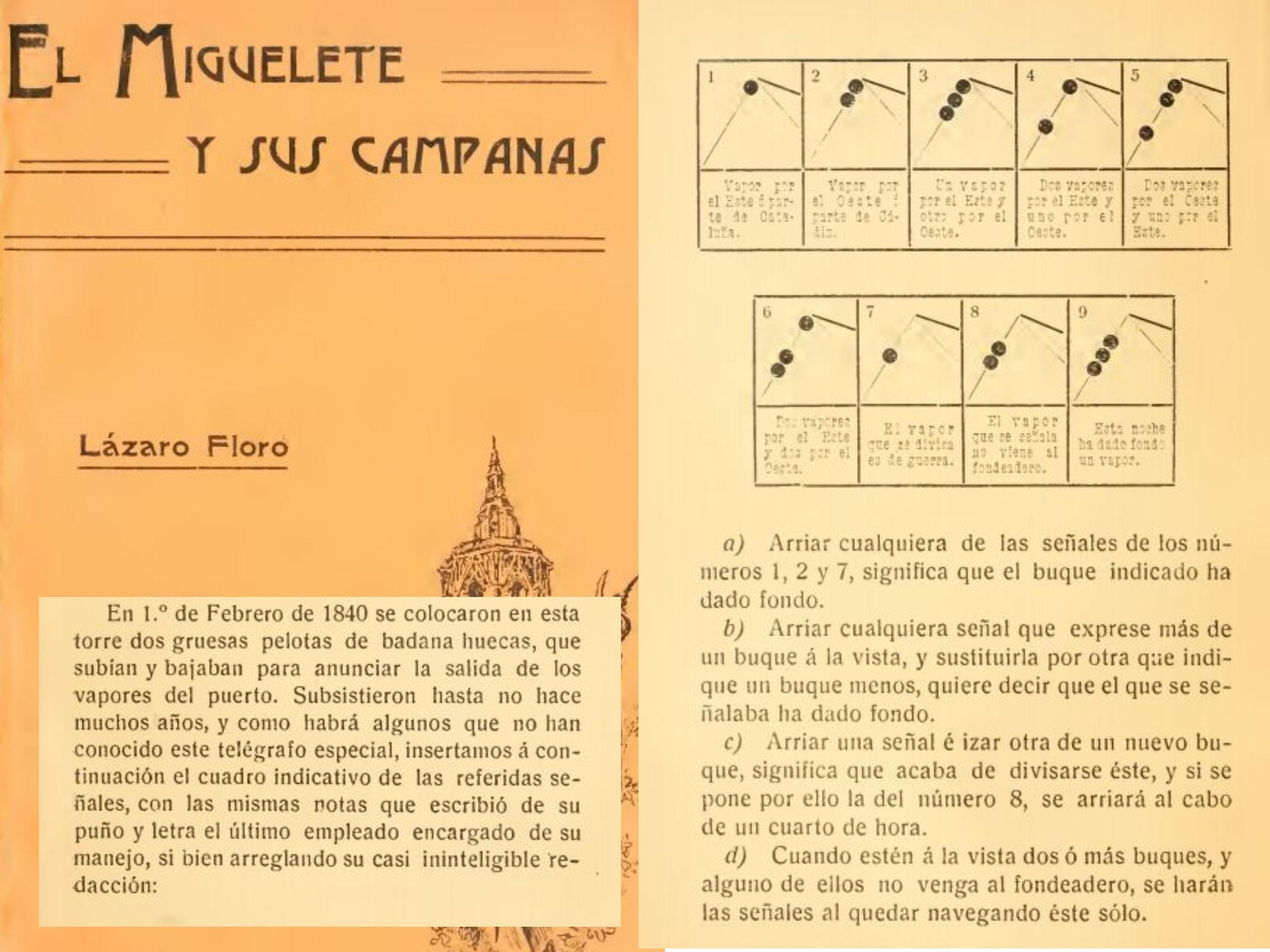 Descripció del codi del telègraf portuari que apareix al llibre ‘El Miguelete y sus campanas’ de Lázaro Flores.