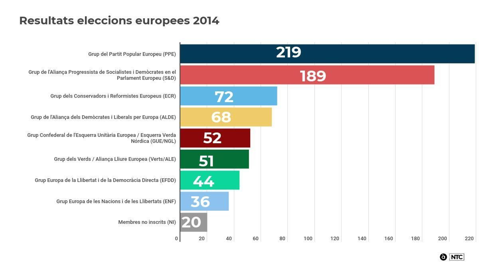 L'any 2014 el Grup del Partit Popular Europeu va obtindre 219 escons, mentre que el Grup de l'Aliança Progressista de Socialistes i Demòcrates al Parlament Europeu en va obtindre 189. Aquests resultats podrien variar en els pròxims comicis per la diversitat de partits que presenten candidatura i la heterogeneïtat dels votants.