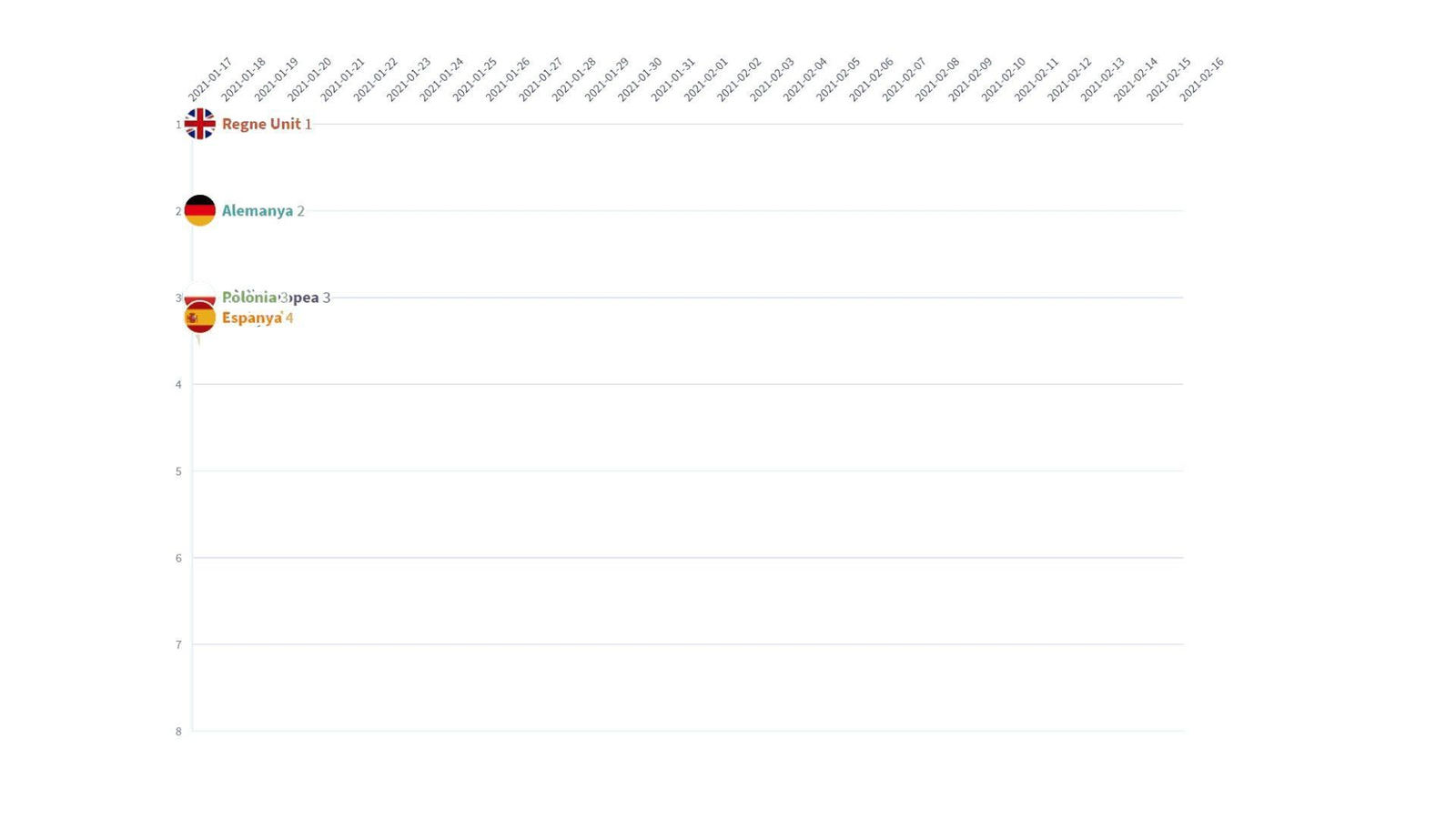 Així ha evolucionat el rànquing de vacunació dels principals països europeus. Font: Our World in Data / Marta Pascual
