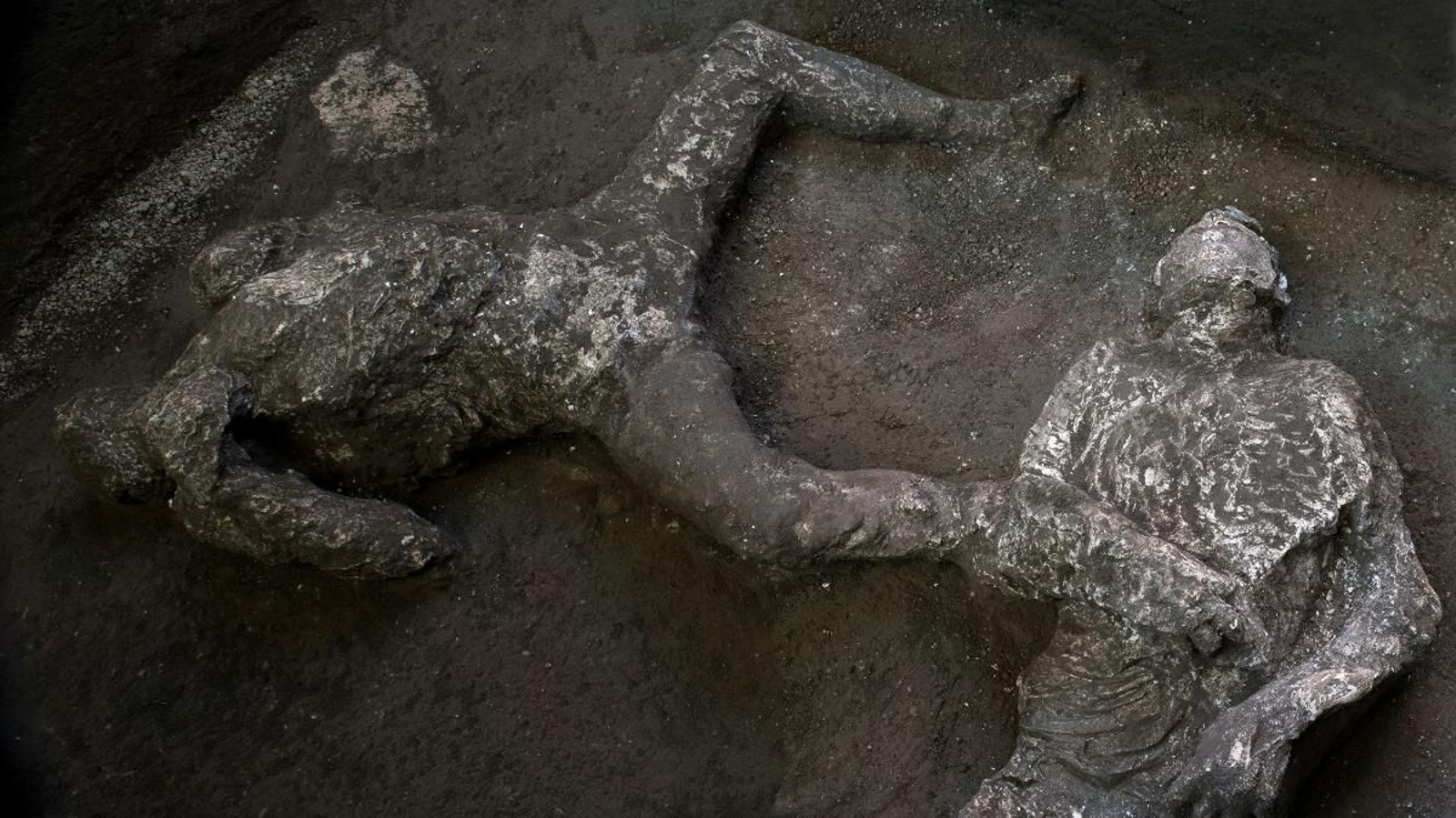 Els dos homes fugien de l'erupció del volcà Vesuvi el 24 d'octubre de l'any 79. Pompeia i la veïna Herculà, dues ciutats pròximes al Nàpols actual, desaparegueren soterrades per quinze metres de lava i cendres. Hi moriren tots els habitants. Els cossos han sigut trobats a la part noble de la vil·la Civita Giuliana, una majestuosa finca de l'època de l'emperador August.