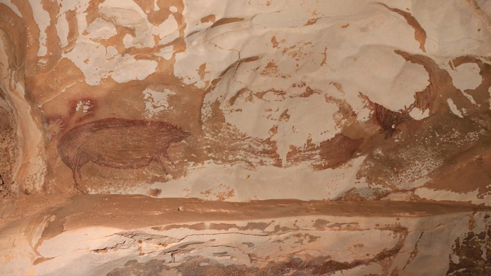 A més de la imatge d'aquest porc de 45.500 anys d'antiguitat, els científics han descobert en una cova pròxima una altra pintura similar que data de fa 32.000 anys. El mateix equip, l'any passat, va trobar una pintura de 43.900 anys d'antiguitat, fins ara considerada com la més antiga, que representa una escena abstracta de caça. Aquesta pintura té la peculiaritat de representar éssers abstractes que combinen característiques humanes i animals, conegudes com a teriantrops, que cacen grans mamífers amb llances i cordes. Segons els experts, pot ser la prova més antiga de l'habilitat humana per a imaginar "l'existència d'éssers sobrenaturals, la pedra angular de l'experiència religiosa".