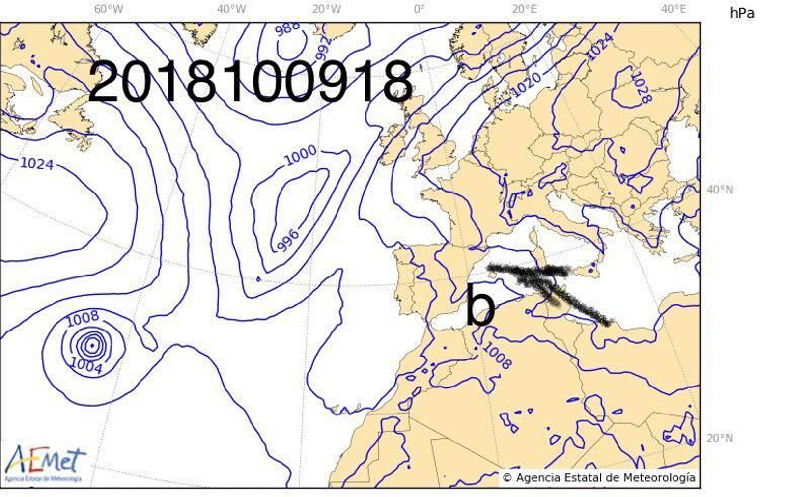 La situació sinòptica mostra l'existència d'una DANA (depressió aïllada a nivells alts) o gota freda en altura, de manera que les Illes quedaven exposades a la zona de màxima inestabilitat que habitualmente és el marge dret de la pertorbació.