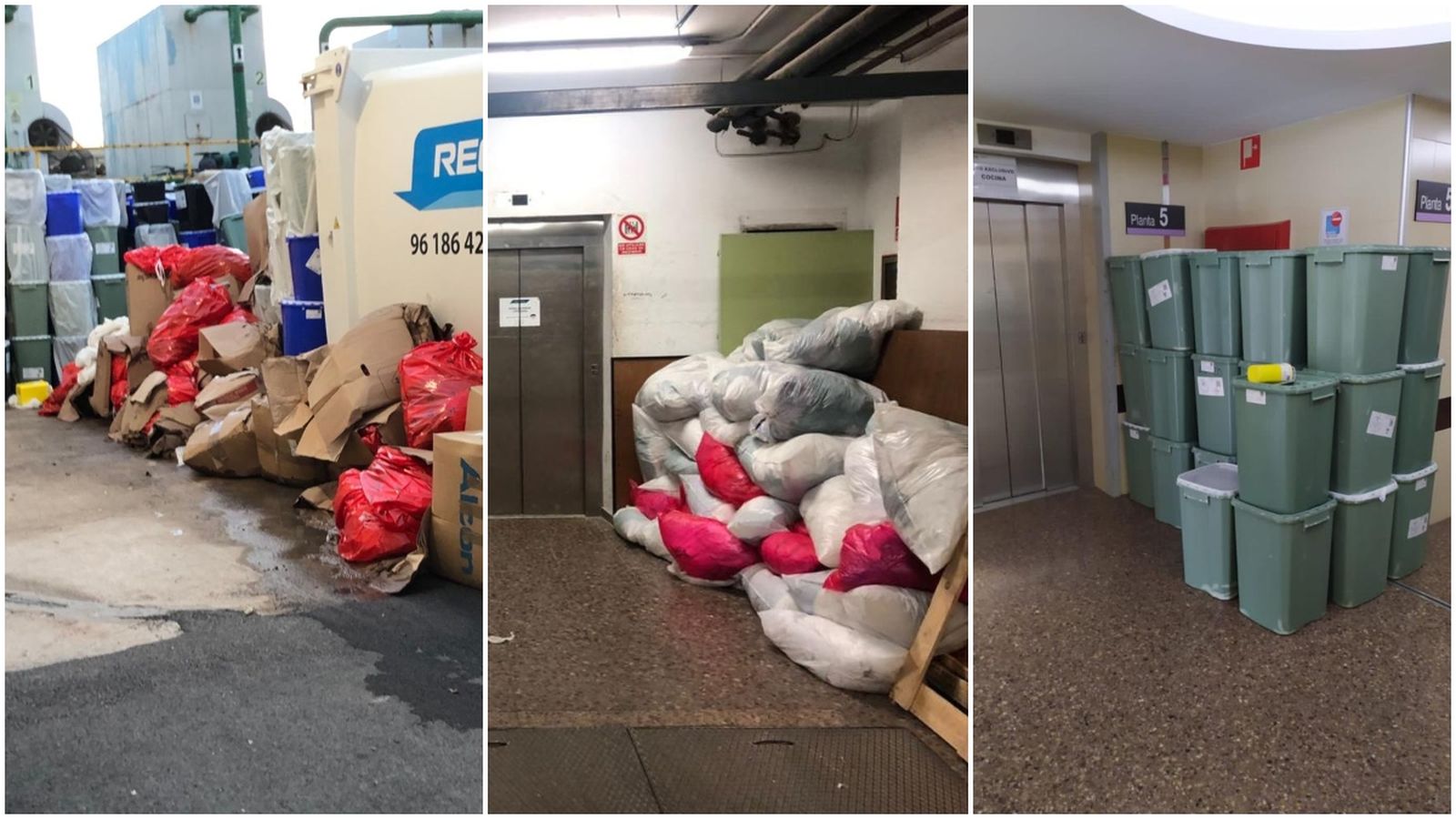 Aquestes denúncies es van presentar a final de novembre i principi de desembre, quan l’acumulació de residus biològics per la Covid va sobrecarregar la capacitat d’alguns hospitals i de les empreses gestores, i van agafar les treballadores de la neteja enmig. D’aquell moment prové la imatge dels soterranis de l’Hospital Clínic de València ple de gom a gom de contenidors de residus de grup 3, els que es generen durant l’assistència, entre altres, de pacients amb coronavirus.
