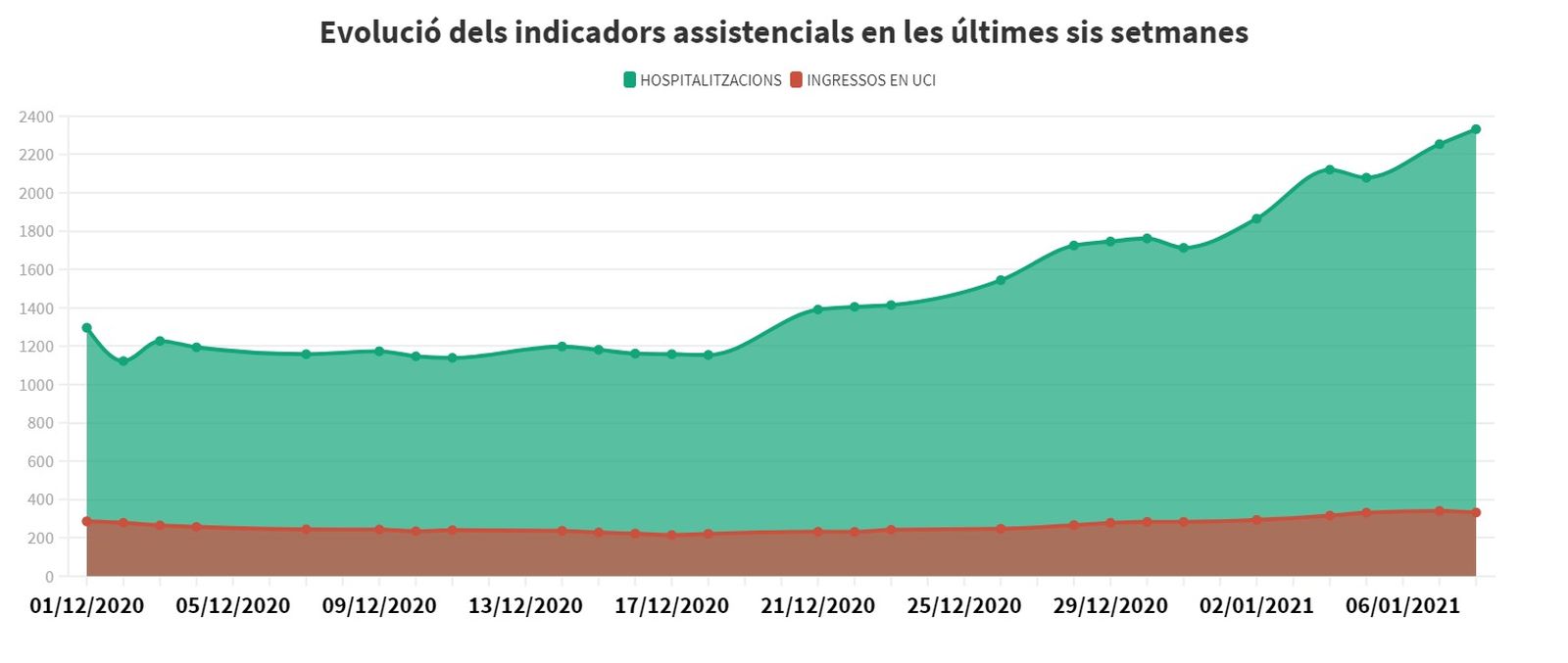 El que semblava un aplanament de la corba d'incidència del virus en la primera part de desembre es va trencar abruptament amb la pujada de casos notificats després del pont, que es van multiplicar en la setmana del 14 de desembre. El 2021 ha començat amb un segon pic, més acusat encara, que les veus expertes atribueixen a les celebracions de Nadal, el 24 i el 25 de desembre.