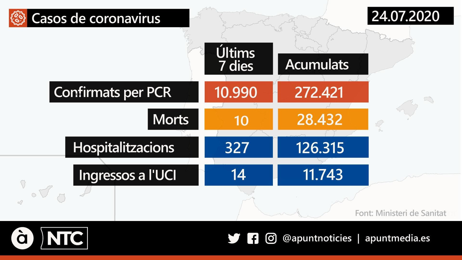 El total de persones afectades per Covid-19 és de 272.421, vora 2.200 més respecte del balanç de dijous.