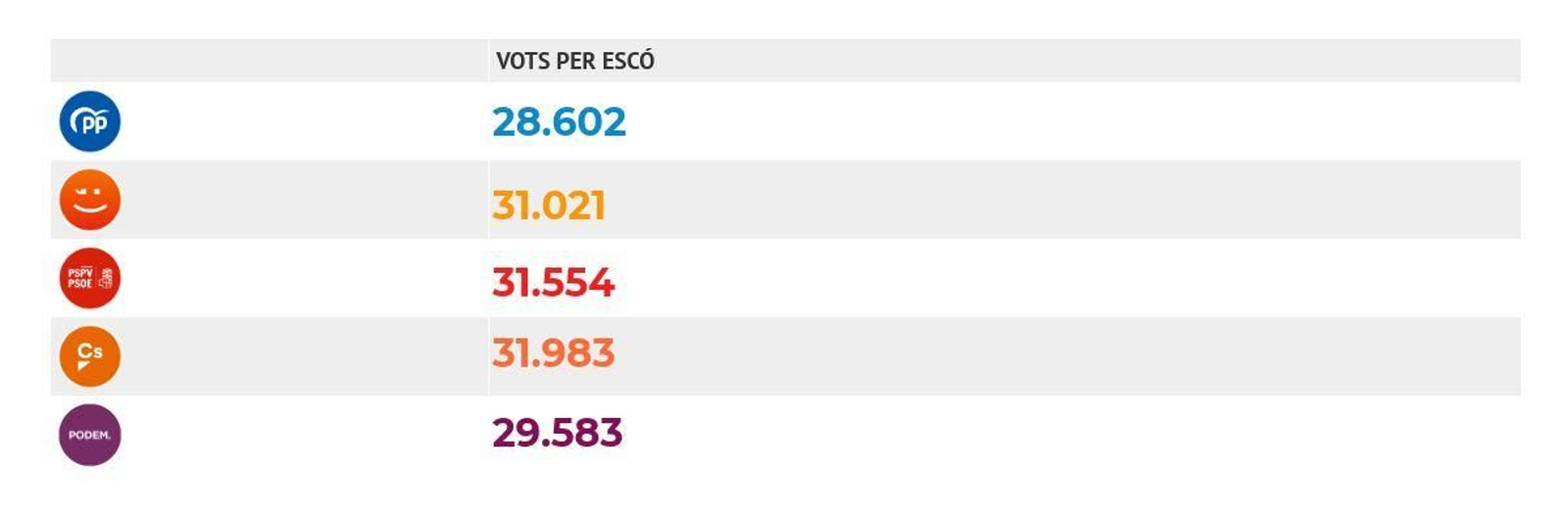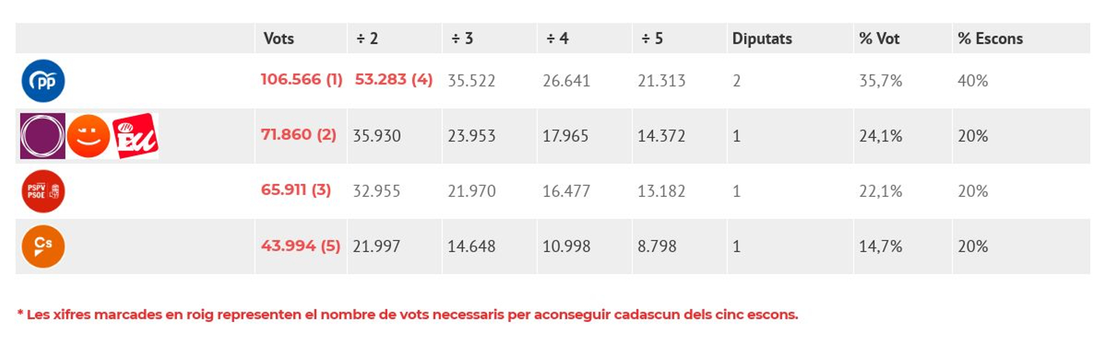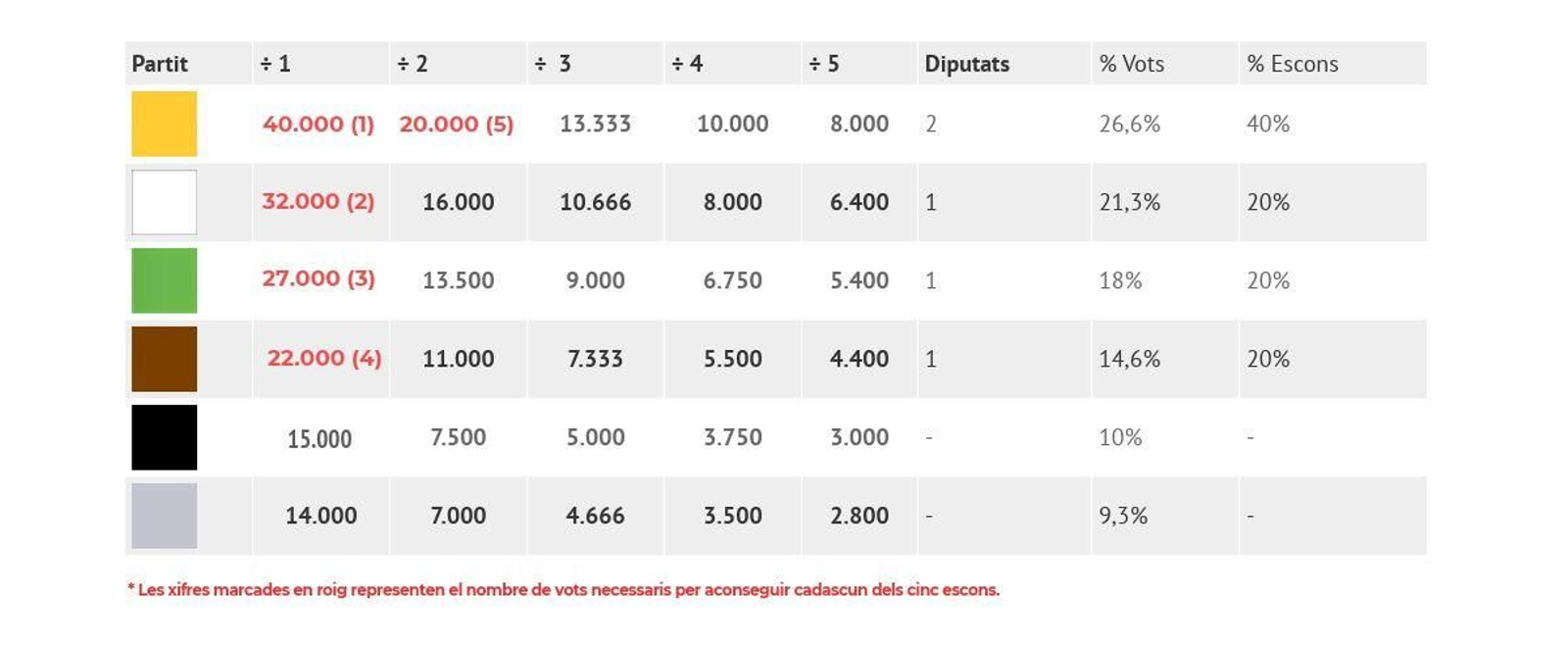 Quants vots li costa a cada partit un diputat?