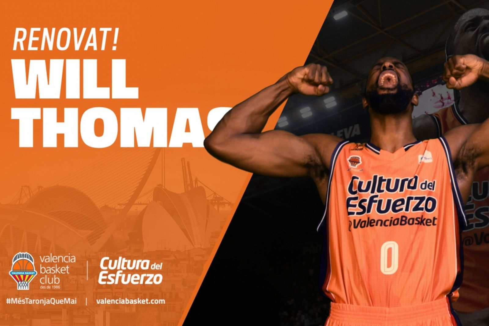 D'altra banda, l'ala pivot nord-americà Will Thomas continuarà jugant en el club taronja fins al 30 de juny del 2019. Complirà així la tercera temporada vestint la camiseta del València Basket, després d'unes negociacions que es van complicar a l'inici. Thomas va ser un jugador important en el joc interior de l'equip campió de lliga i també va continuar oferint bones xifres la temporada passada. Ha acumulat, en l'estada a València, 7 punts de mitjana per partit, 4 rebots i 9 de valoració.
