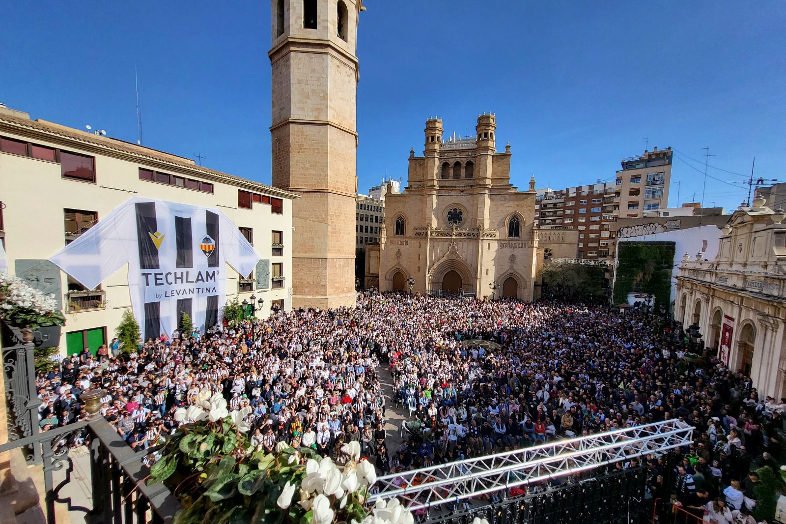 Una plaça Major abarrotada per l’afició alb-i-negra ha vibrat amb el duel a la capital de la Plana Alta. Una pantalla gran instal·lada per l’Ajuntament al cor de la ciutat ha congregat més de 5.000 seguidors i seguidores de l’equip, que no han pogut celebra una victòria.