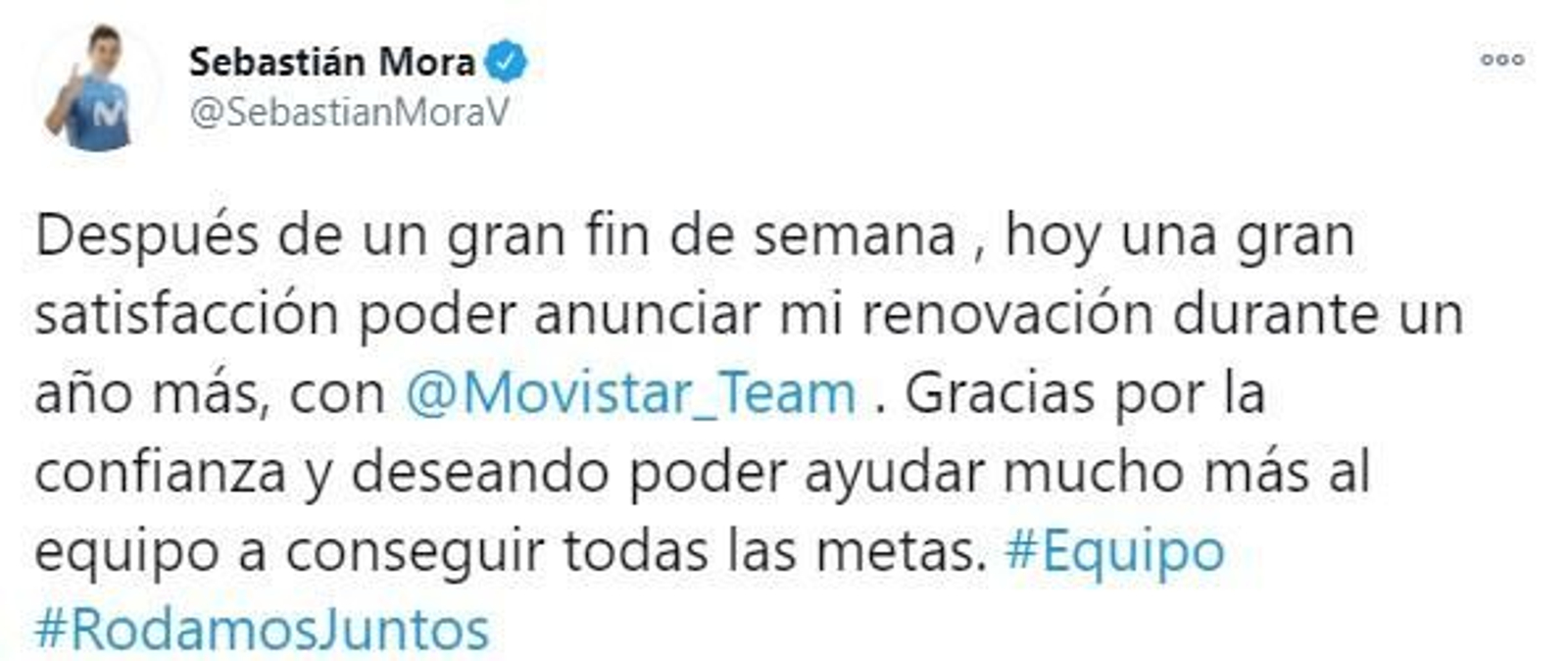 Sebas Mora renova una temporada més amb Movistar