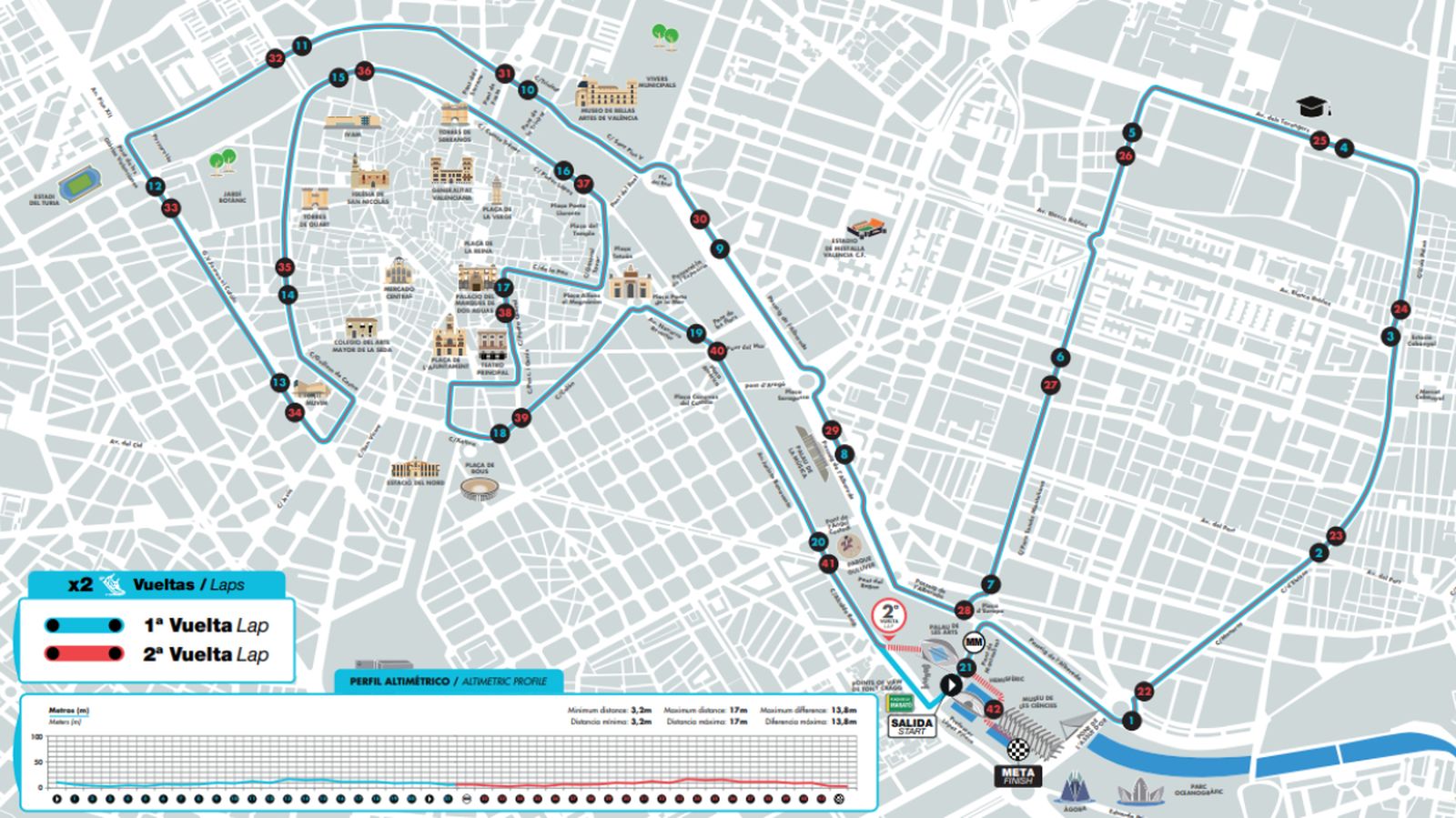Els principals carrers del centre de València estaran tallats al trànsit aquest diumenge entre les 7:00 i les 11.45 h. L'enorme alteració del guió que ha introduït la Covid-19 ha portat també a ajuntar en una mateixa jornada i en un mateix circuit de 21 quilòmetres, encara que amb eixides separades, a la Marató, que començarà a les 8:30 i donarà dues voltes, i la Mitjana Marató, que ho farà mitja hora abans.