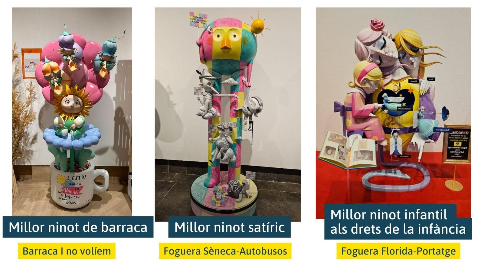 Quants als premis del jurat, s'ha incorporat nou enguany el premi al millor ninot satíric, que en categoria especial ha sigut per a la foguera Sèneca-Autobusos, i també el millor ninot infantil pels drets de la infància, que ha tingut com a triomfadora d'especial la foguera Florida-Portatge.