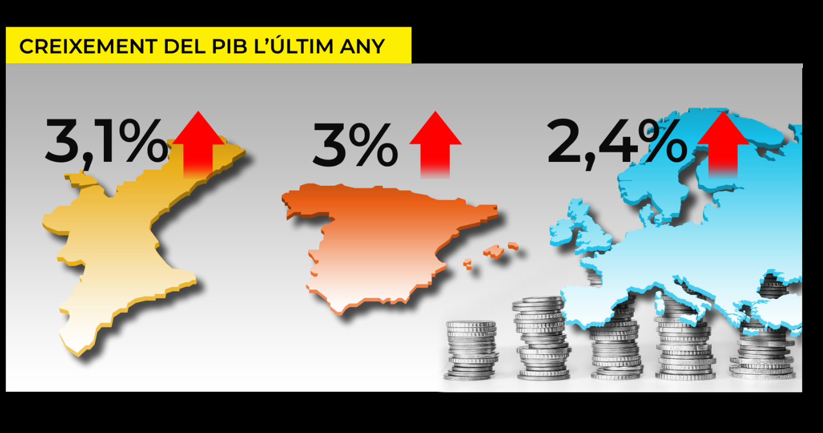 Una dècada després de la crisi econòmica, les dades mostren la recuperació econòmica a Espanya i també a la Comunitat Valenciana. El producte interior brut (PIB) valencià va créixer un 3,1% el 2017, lleugerament per damunt de la mitjana del 3%, segons les dades actualitzades de l'Institut Nacional d'Estadística (INE).