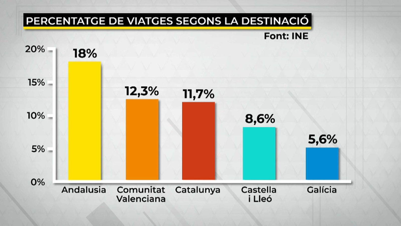 En concret, la Comunitat Valenciana va ser la destinació de 7.514.243 viatges del total de 61,1 milions que s'han fet en el territori nacional. La mitjana de pernoctacions se situa en 6,9 i la mitjana de despesa arriba als 38 euros.