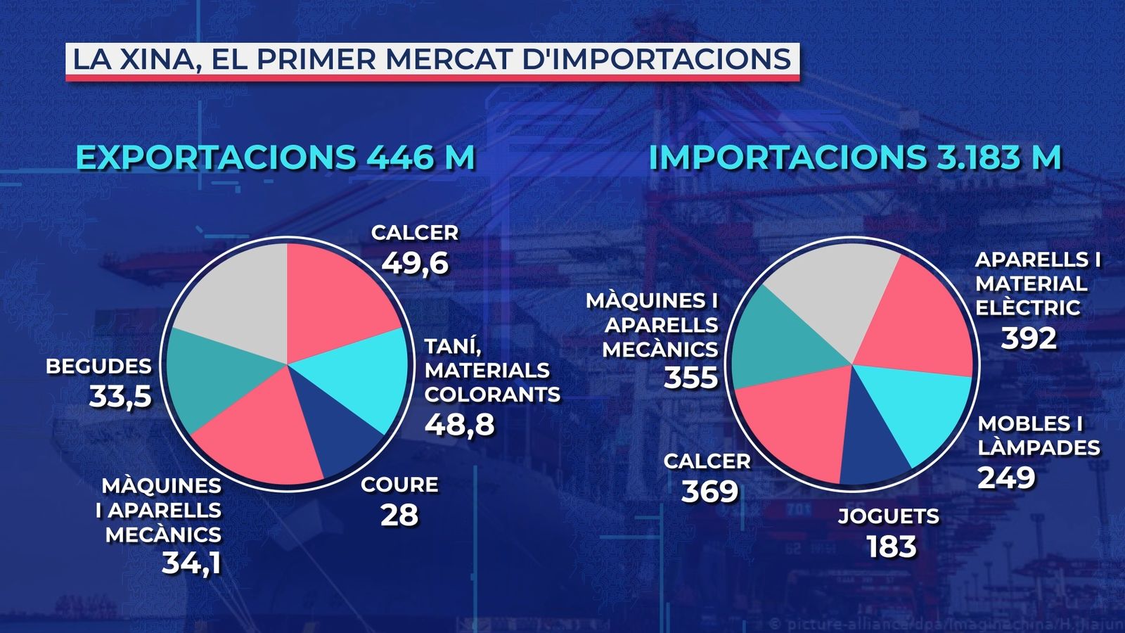 D'altra banda, la Xina també rep productes valencians. De fet, en l'última dècada s'ha consolidat un creixement que gira al voltant dels 500 milions d'euros i en cinc anys ha crescut en un volum de vora el 10%. Els principals són el calcer, el taní i materials colorants, màquines i aparells mecànics, begudes o coure.