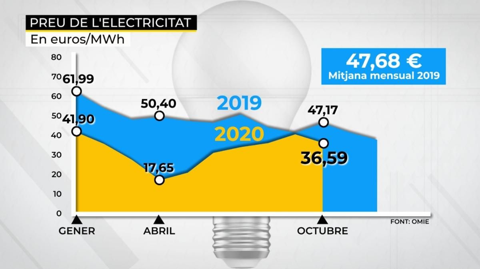 D'aquesta manera, a l'octubre es posa fi a l'espiral alcista que registrava el rebut de la llum des del mes de maig passat, després de les caigudes de febrer (-4,6%), març (-6,3%) i abril (-7,8%), en ple confinament per la pandèmia del coronavirus.