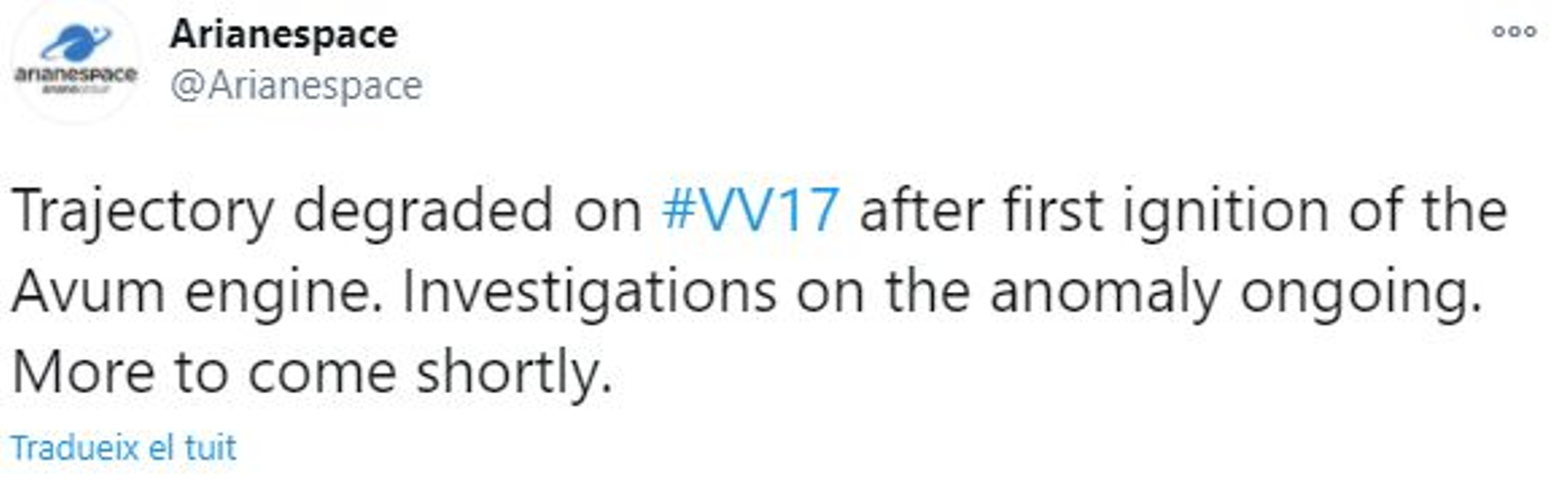 L'ESA ha començat ja a analitzar les dades de telemetria per a determinar la causa de la fallada, i responsables de l'agència espacial compareixeran en roda de premsa en el complex espacial de Kourou per a informar sobre el que ha ocorregut.