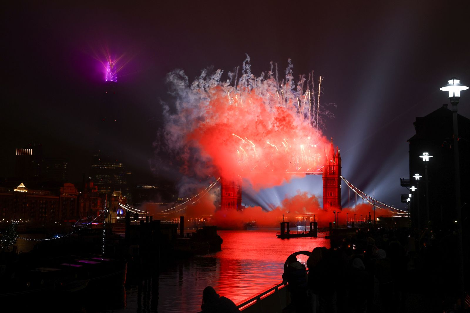 Els focs artificials il·luminaren els voltats de Tower Bridge en una ciutat marcada per l'enduriment de les restriccions per la por a l'expansió al país de la nova variant del coronavirus. En els últims dies, la pandèmia ha assolit xifres de rècord al Regne Unit i la capital se situa en el nivell de risc 4.