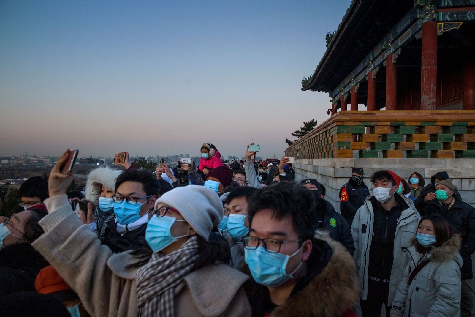 Un gran grup de persones amb mascareta esperen a fer fotos de l'eixida del sol a la capital xinesa, on les fortes mesures durant bona part del 2020 han donat pas a certa normalitat. No obstant això les autoritats xineses van demanar prudència a la població en detectar els primers casos de contagi local en mesos.