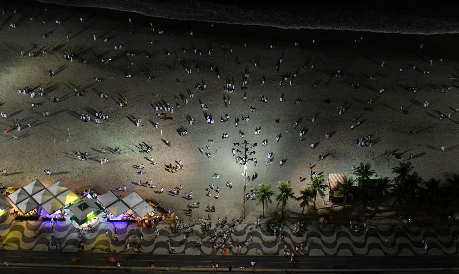 Distància interpersonal entre els assistents a la celebració de Cap d'Any a la platja de Copacabana.