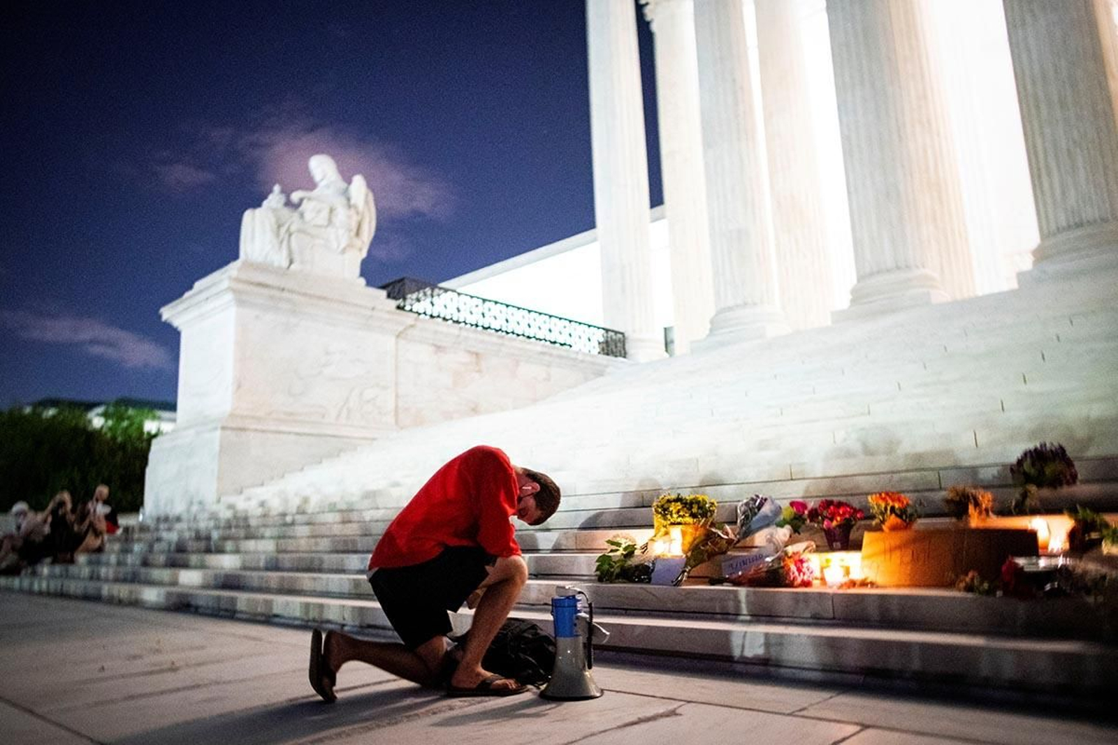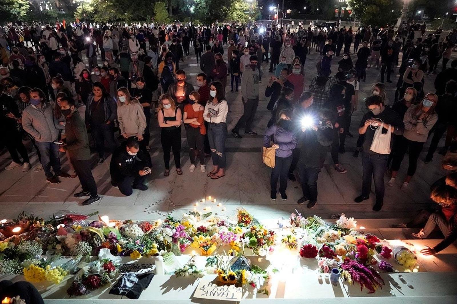 Centenars de persones amb ciris, flors i cartells es van congregar durant la nit de divendres als esglaons del Tribunal Suprem dels Estats Units per a plorar la mort de la jutgessa Ruth Bader Ginsburg als 87 anys, a causa de complicacions d'una metàstasi en el càncer de pàncrees que patia.