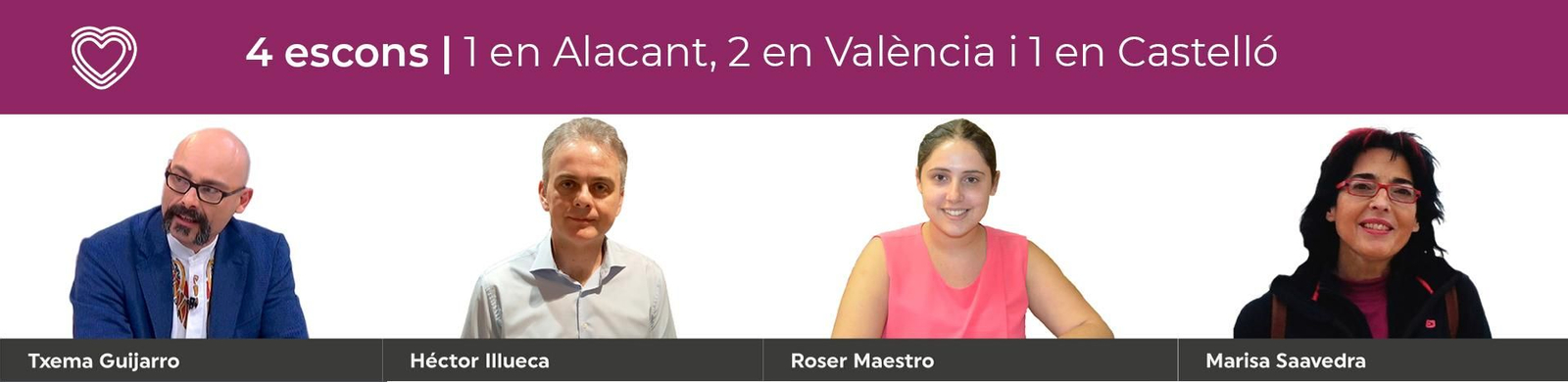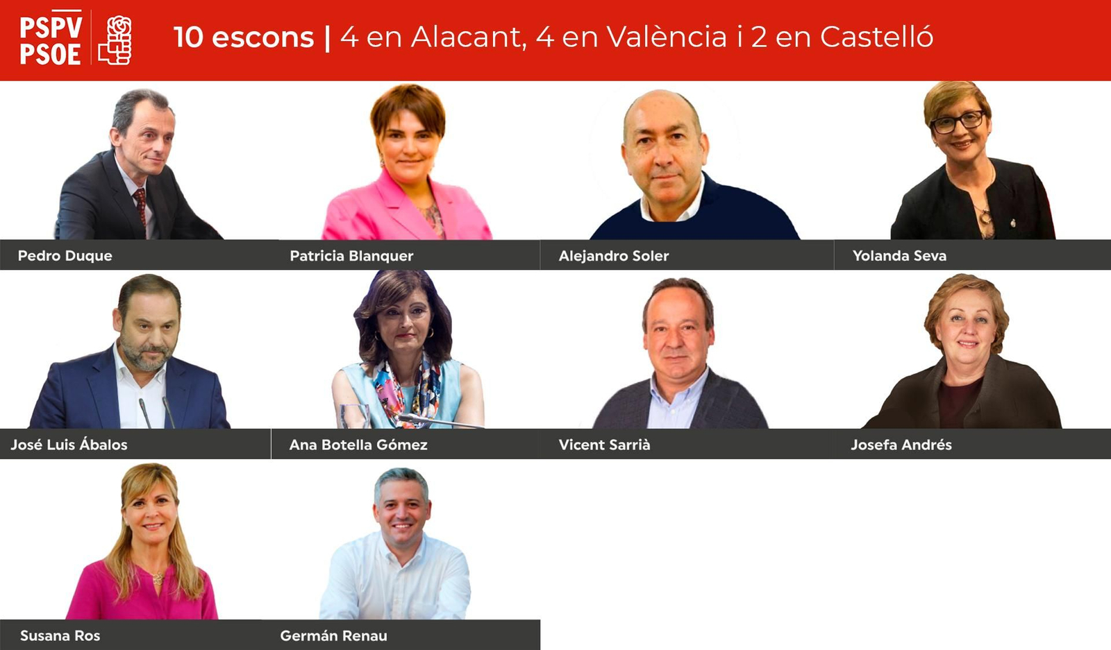 Deu pertanyen al PSPV, huit al PP, set a Vox, quatre a Unides Podem, dos a Ciutadans i un a Més Compromís.