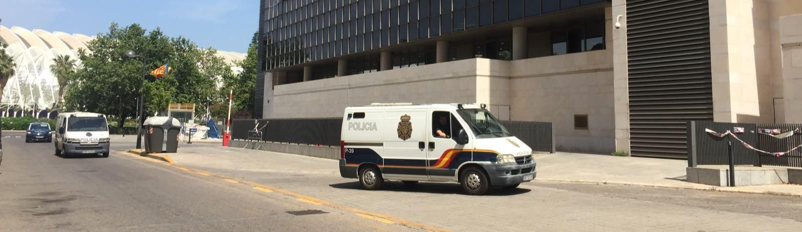 Els sis detinguts han arribat en 2 furgons policials des de la comissaria de Sapadors de València, on han passat la nit.