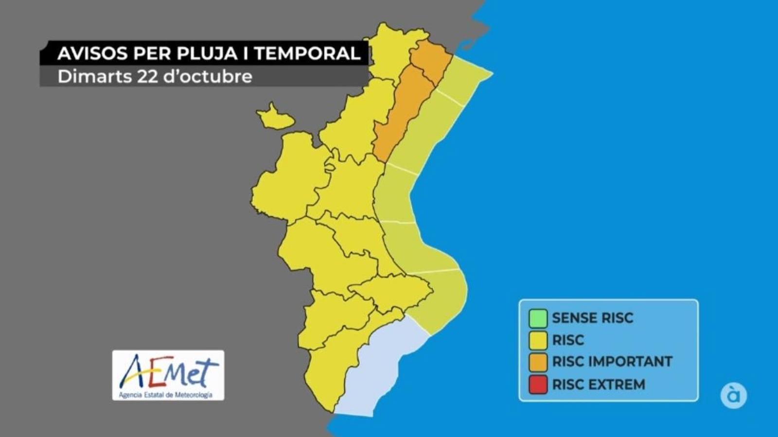 A partir d’aquesta mitjanit l’avís pujarà un escaló i pintarà de taronja les comarques del nord.