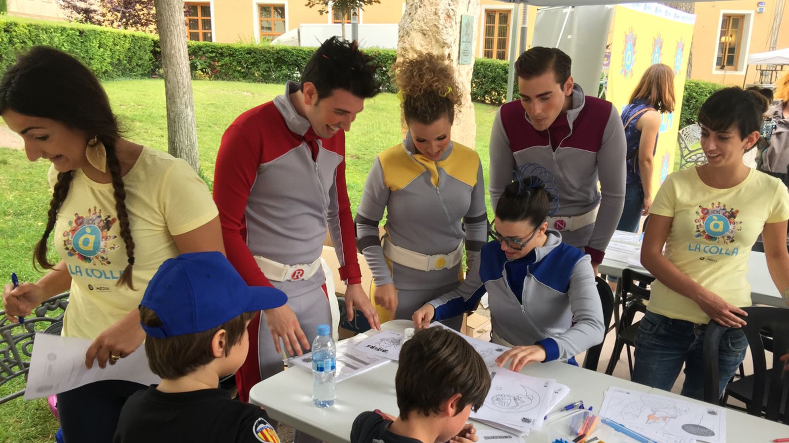 La participació en les Trobades d’Escoles Valencianes forma part de la presentació en societat de La Colla, la comunitat infantil d’À Punt. Des de les 17.30 hores, els xiquets i les xiquetes han pogut maquillar-se i fotografiar-se amb els Bíters i amb Aitana Ferrer en el photocall habilitat prop de l’escenari, a la plaça del Convent, a Biar. Al costat, un taller didàctic ha permés als més menuts recrear els personatges més populars d’À Punt: Júlia i Gilbert, Doraemon i els protagonistes de Catacric, Catacrac, la sèrie basada en les Rondalles d’Enric Valor.