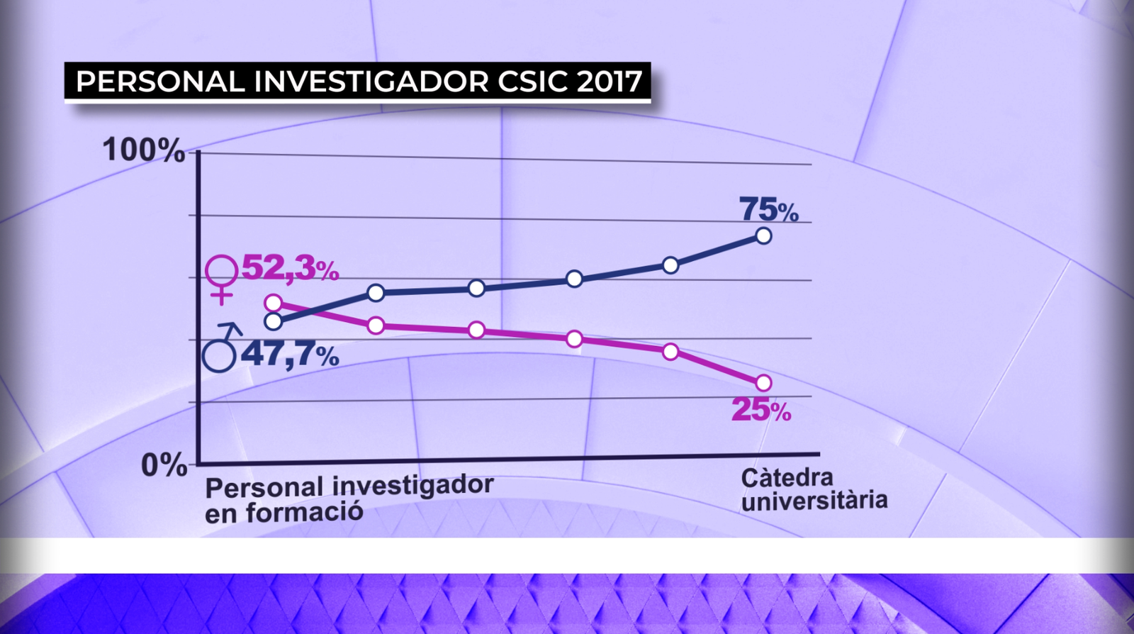 Encara que a Espanya més de la meitat de les matrícules universitàries són de dones, en carreres científiques o enginyeries, representen entre un 23% i un 30%. A més, a mesura que avança la carrera professional fins a la càtedra, el percentatge s'hi redueix encara més. Segons el Ministeri d'Economia, el 79% dels catedràtics de les universitats públiques són homes.