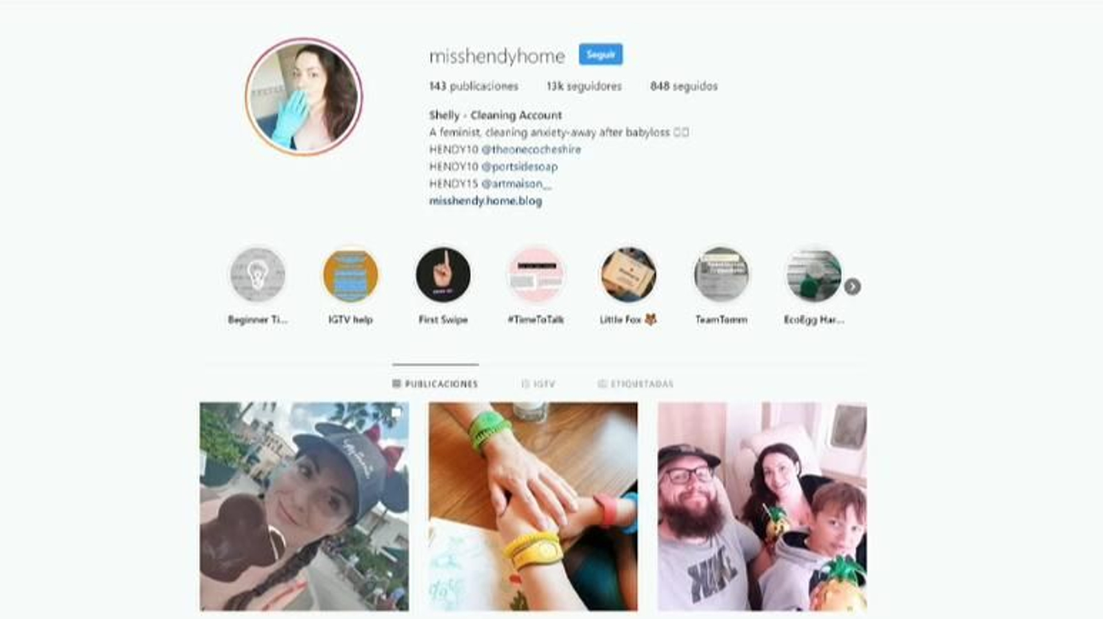 Un exemple és @Misshendyhome, que té més de 13.000 seguidors en Instagram. Es defineix com feminista i netejadora per a fer front a l'ansietat després de perdre un nadó. En el seu perfil es promocionen productes de neteja, es fa testatge de marques i també es donen consells per a mantindre la casa ben polida, com ara deixant l'aixeta lluent i perfecta.