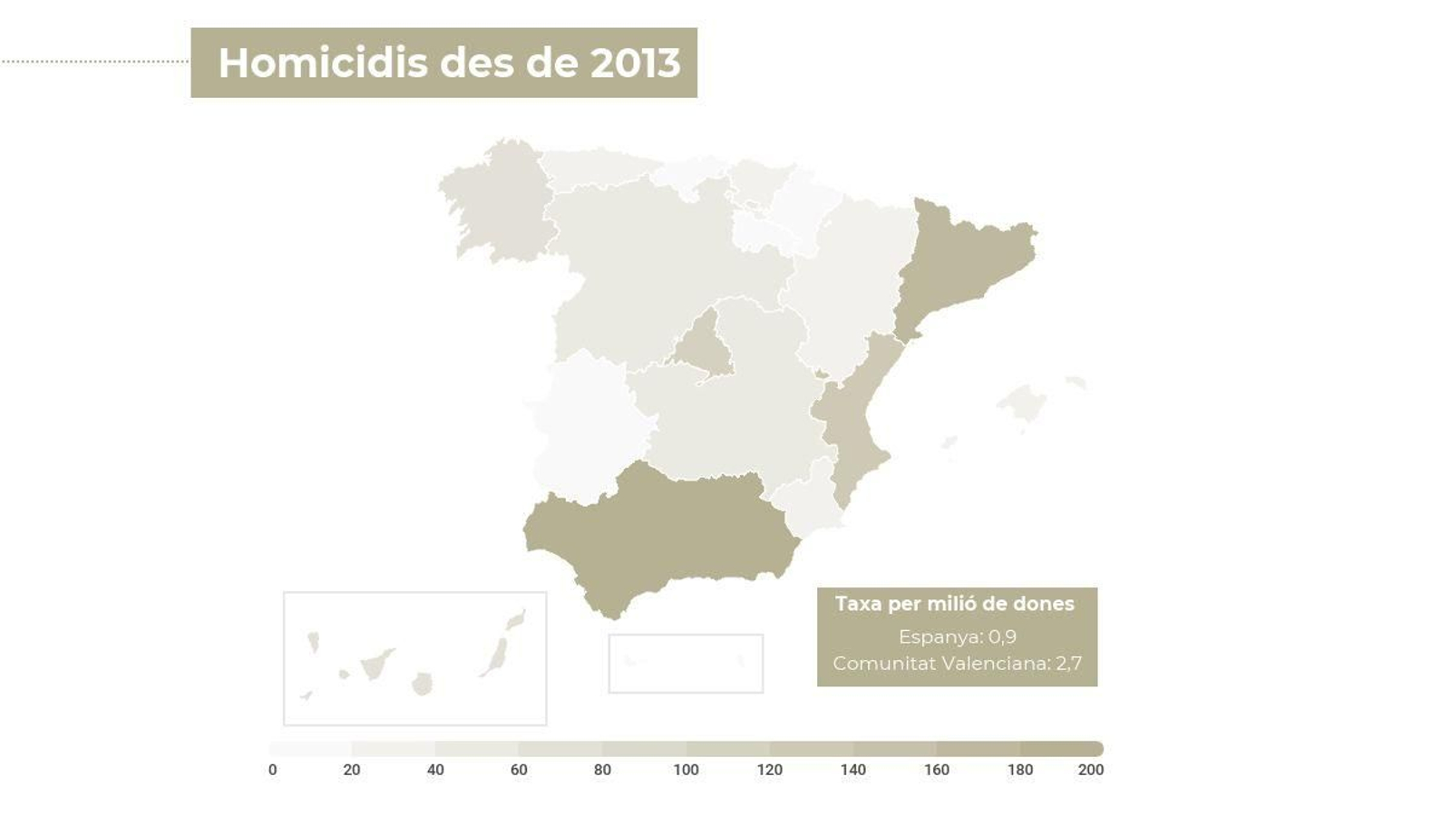 Des que es tenen registres, ara fa setze anys, han matat 1.051 dones i 35 xiquets i xiquetes a tot l’estat espanyol, 6 dels quals es trobaven a la Comunitat Valenciana. Han quedat orfes un total de 289 menors, 41 ací. Una vegada més, la valenciana és la tercera comunitat autònoma amb pitjors xifres, per darrere d’Andalusia i Catalunya.