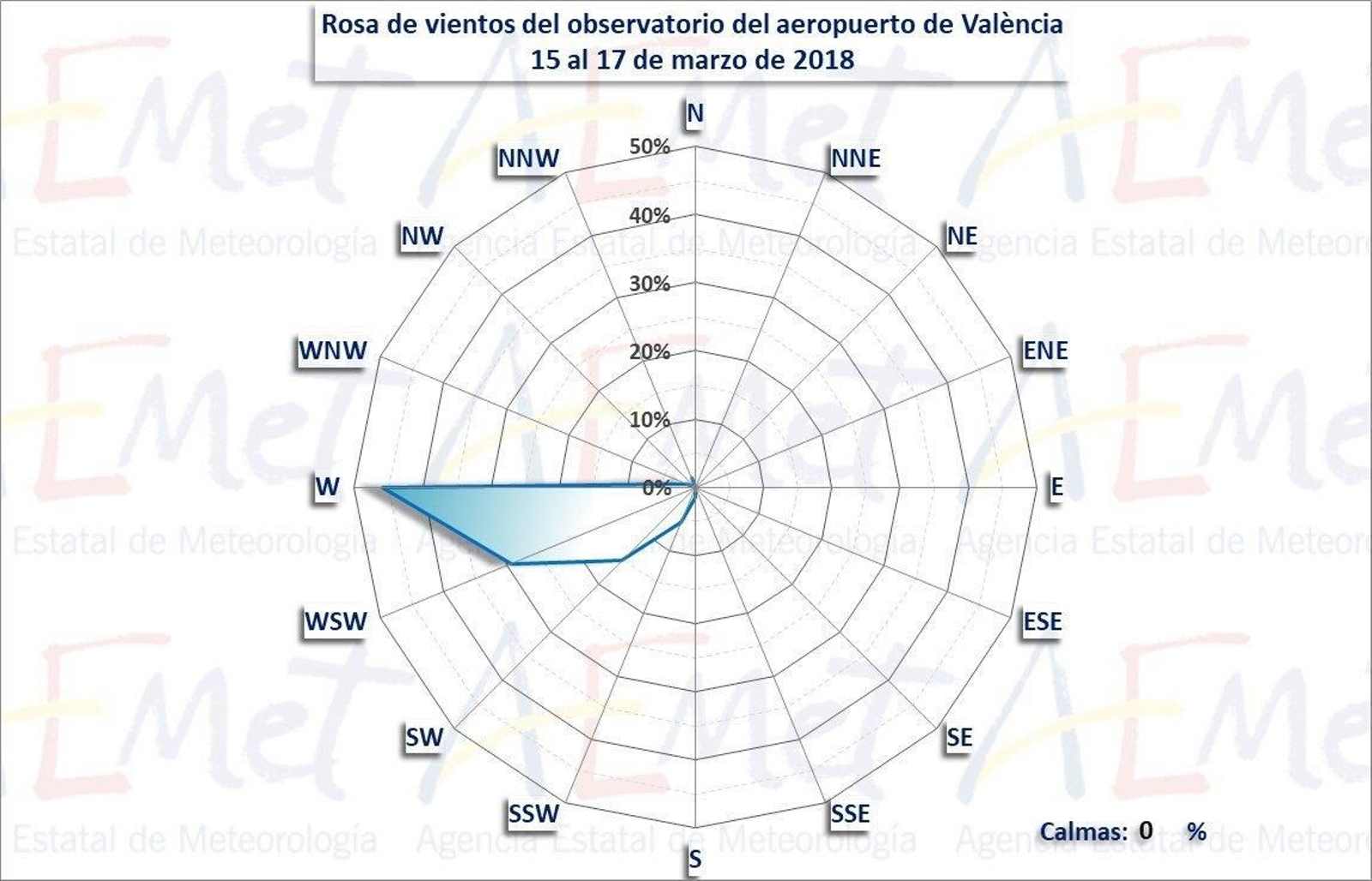 Els darrers episodis de vent fort de component oest han afectat tota la Comunitat i la ciutat de València no n'ha sigut l'excepció. Aproximadament des de dijous passat, el ponent ha bufat sense calma quasi el cent per cent del temps. Aquest fet podria fer que les Falles de enguany foren les més ventoses de les últimes dècades.