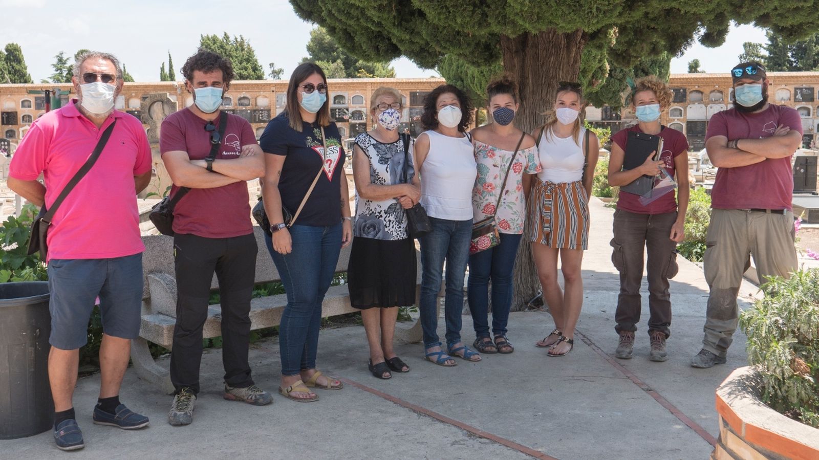 Familiars dels soldats del Front del Llevant amb l’equip d’arqueologia / Eloy Ariza (ArqueoAntro)