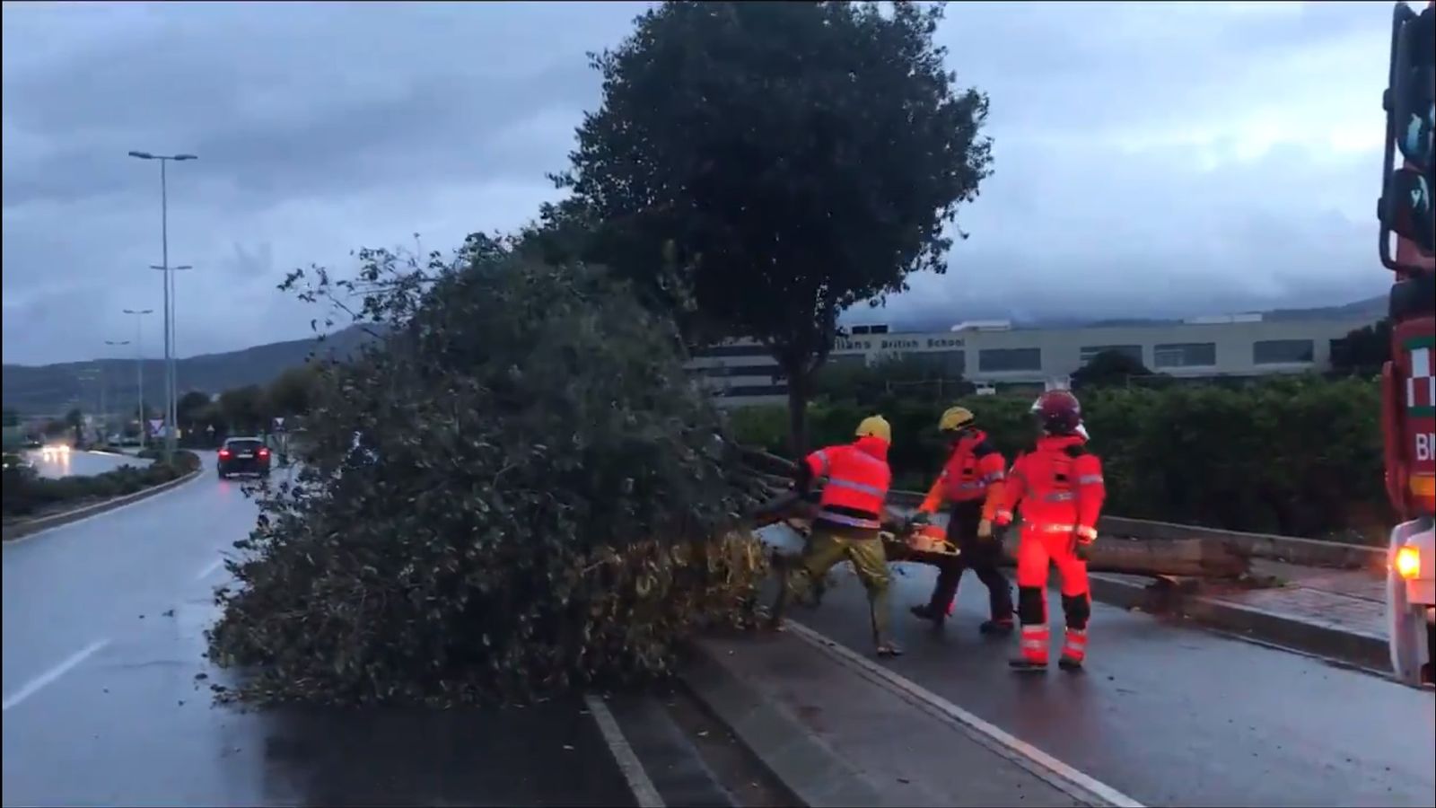 21.25 h. Emergències atén 60 incidències relacionades amb la pluja, entre les quals destaca la caiguda d’un arbre a la Ronda Nord de Castelló.