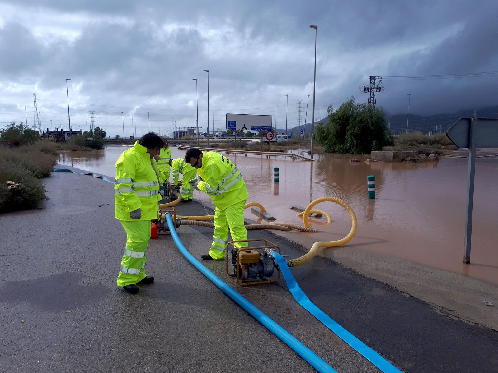 14.20h. Brigades que ha mobilitzat la Diputació de València realitzen tasques d'extracció d'aigua al polígon industrial de Sepes, a Sagunt.