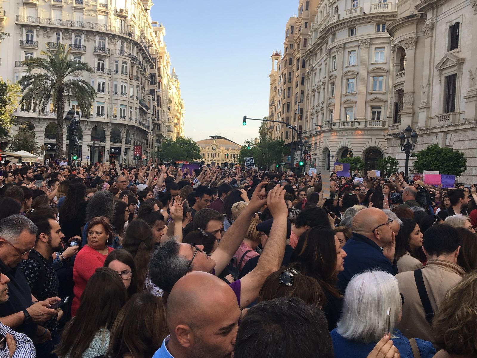 València, Castelló, Alacant, Elx, Alzira, Borriana, Alcoi... Ajuntaments de tota la Comunitat Valenciana han sigut l'escenari de protestes contra la sentència del juí de La Manada. A València la convocatòria era a les 19.00 h davant de l'Ajuntament i a les 20.00 h a les portes de la Delegació de Govern; a Alacant, les protestes també s'han traslladat des de l'Ajuntament, a les 19.00 h, fins a l'Audiència Provincial, a les 20.00 h; i, a Castelló, Requena i Vila-real la protesta ha sigut a les 20.00 h a les portes de l'Ajuntament.