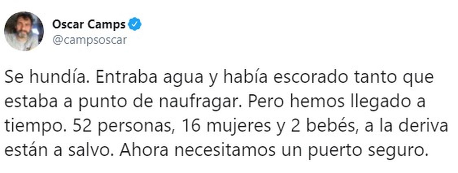 El vaixell Open Arms ha rescatat 55 persones, entre elles 16 dones i dos nadons, que viatjaven en una embarcació a punt de naufragar al Mediterrani. Ara l’ONG demana un port segur on desembarcar els migrants.