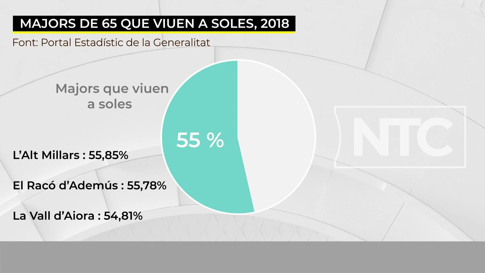 Si s'analitzen les dades, crida l'atenció que en més de la meitat de les llars formades per només un membre l'edat d'aquestes persones està per damunt dels 65 anys. Per tant, vora el 55% de les persones que viuen a soles en les comarques afectades pel fenomen són majors.