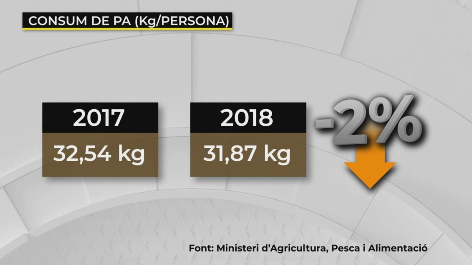 Segons l'informe del consum alimentari, la compra de pa a Espanya es va reduir un 2% l'any 2018, i va caure fins a mínims històrics. El preu mitjà va ser de 2,40 euros el quilo, la qual cosa també suposa una lleugera caiguda del 0,2% respecte del 2017.