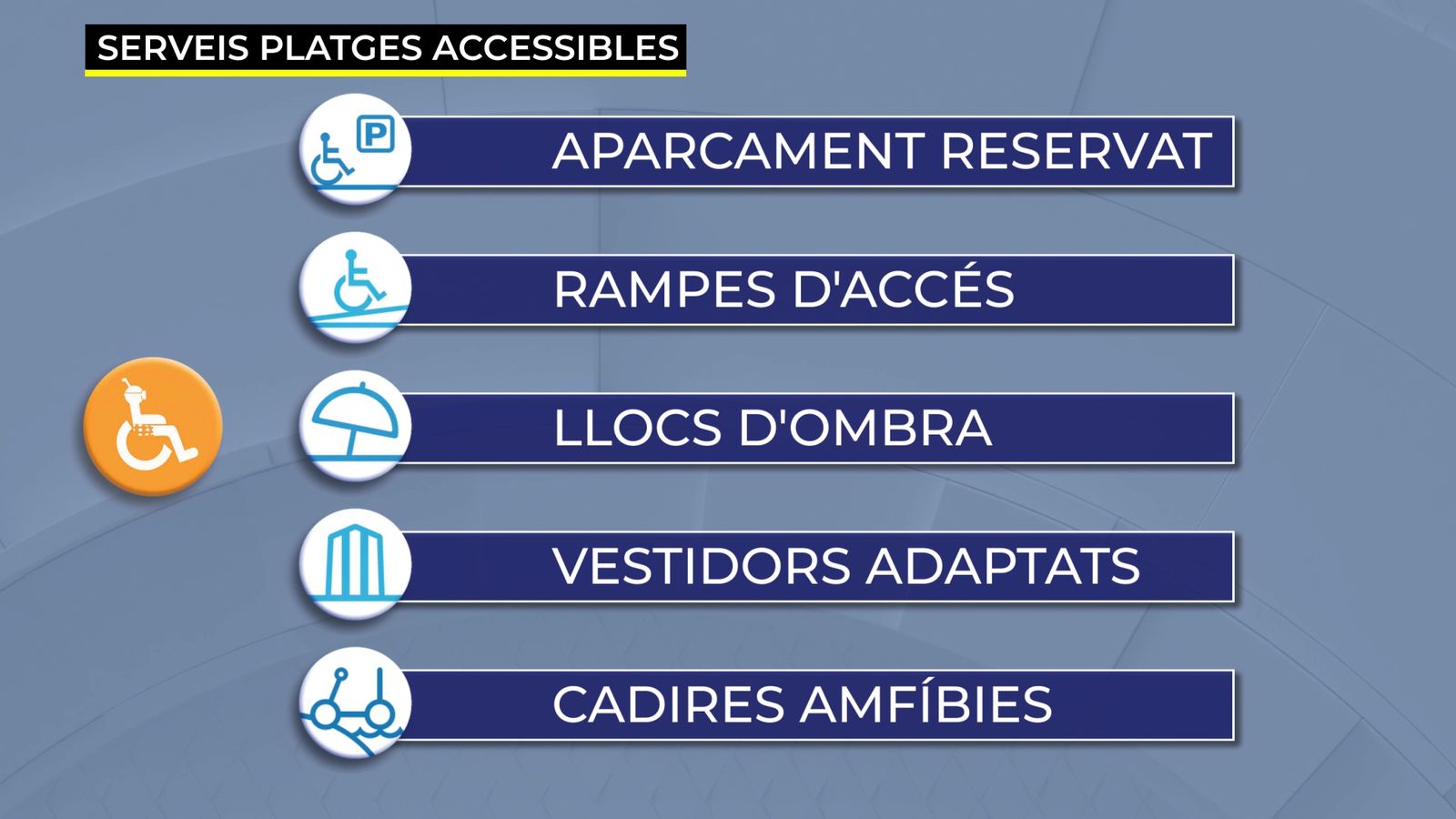 Entre els serveis que donen, estan els aparcaments reservats, rampes i passarel·les especials per a cadires de rodes. També s'habiliten espais a l'ombra i s'incorporen vestidors adaptats a les persones amb diversitat funcional. Per facilitar el bany a la mar, cadires per a entrar a l'aigua i crosses amfíbies, que permeten una autonomia absoluta a les persones amb mobilitat reduïda. Tot això, acompanyades de personal especialitzat de suport.
