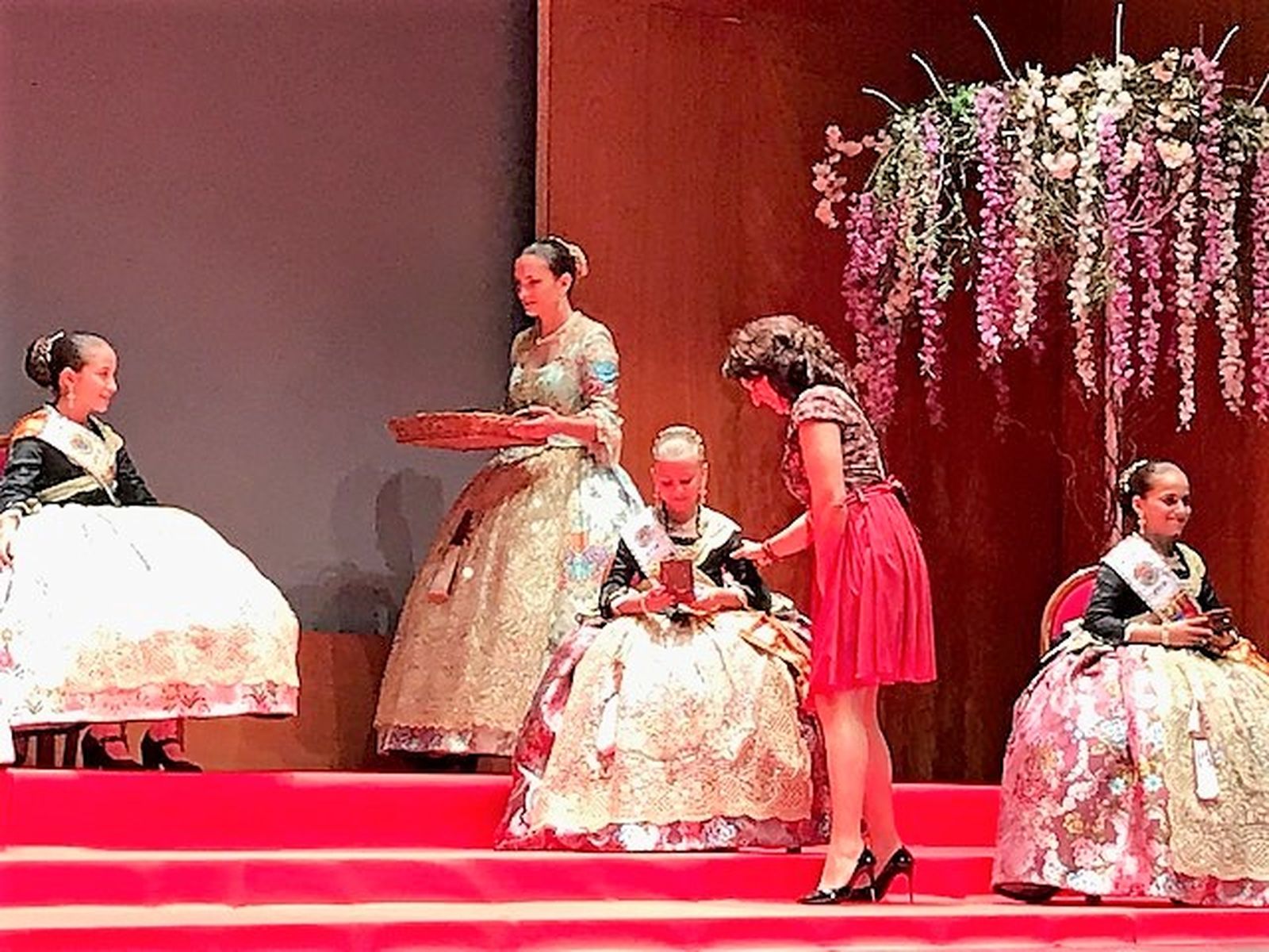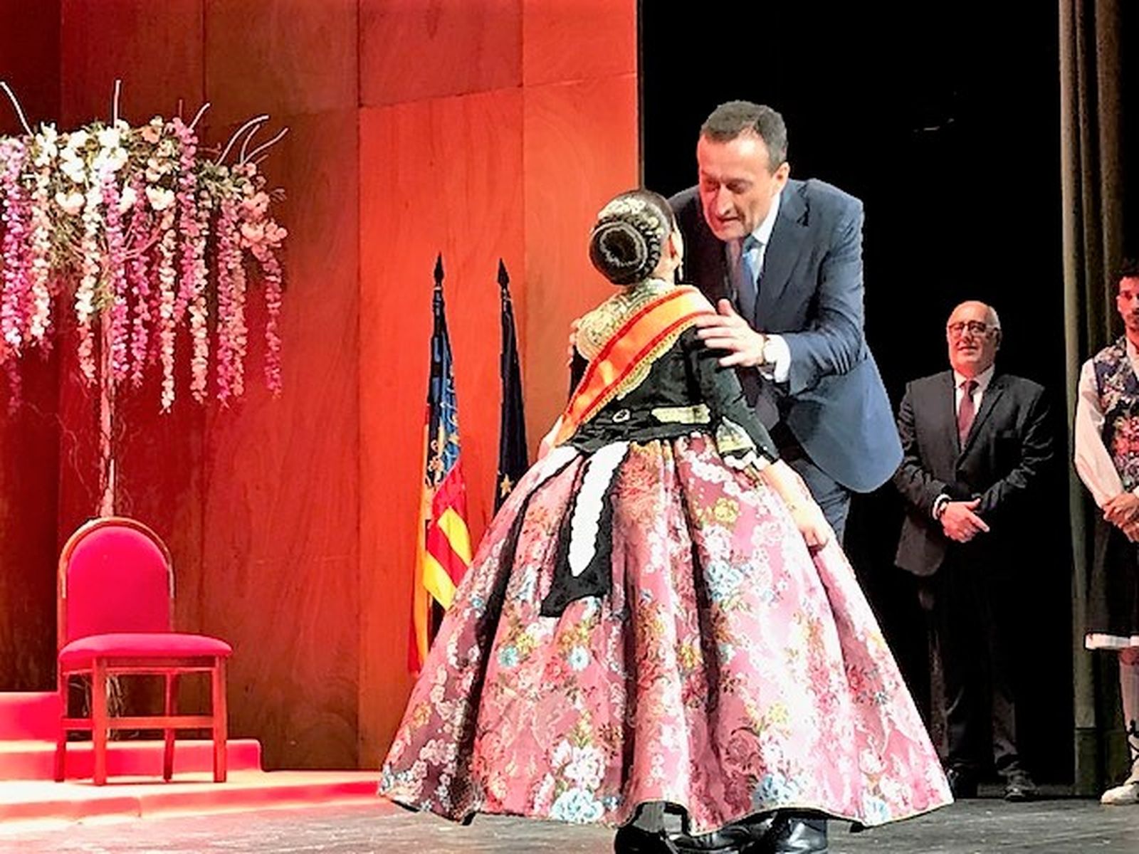 El regidor de Festes, José Pérez, va imposar les bandes a les representants de la festa gran d'Elx. L'acte va comptar també amb la presència d'Andrés Coves, de la Unió de Festers del Camp d'Elx, Fernando Jaén, president de la Federació Gestora de Festejos Populars, i l'alcalde de la ciutat, Carlos González.