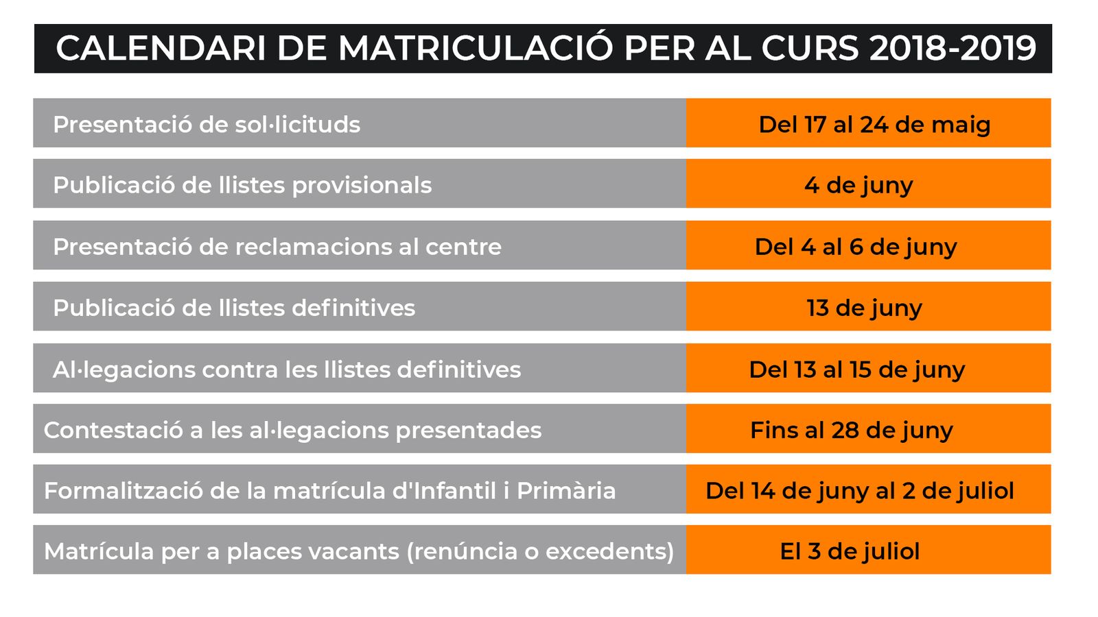S'obri el procés d'admissió a les escoles per al curs 2018-2019