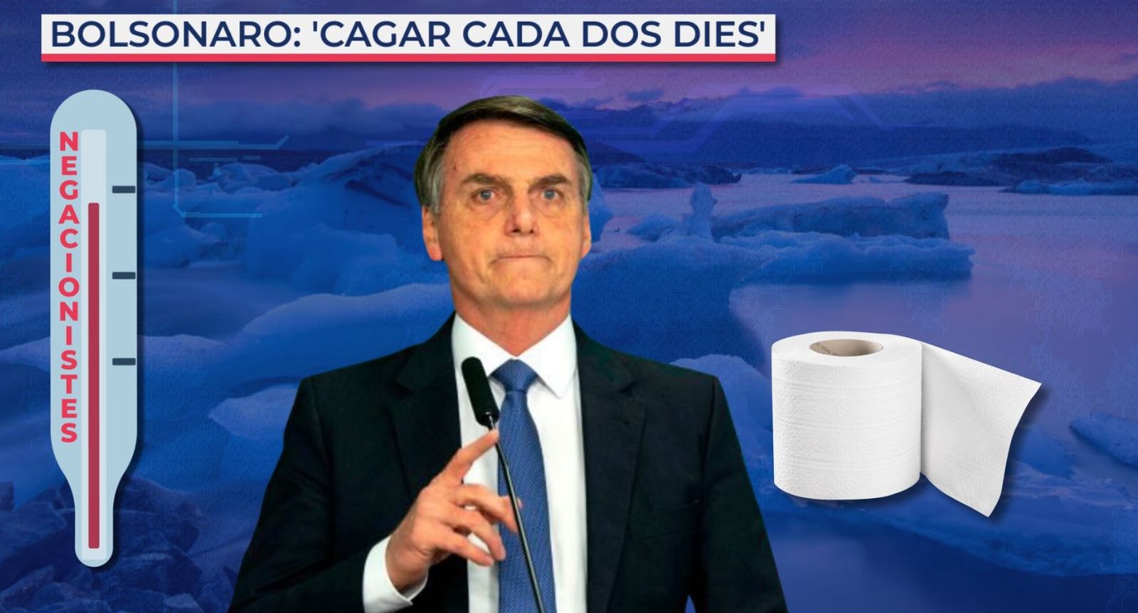 El president del Brasil, Jair Bolsonaro, no amaga la seua despreocupació sobre el canvi climàtic i considera que la solució és anar al bany cada dos dies. “N’hi ha prou amb menjar menys. Si parles de contaminació ambiental, n’hi ha prou amb fer caca cada dos dies. És el millor per a tot el món”, va assegurar.