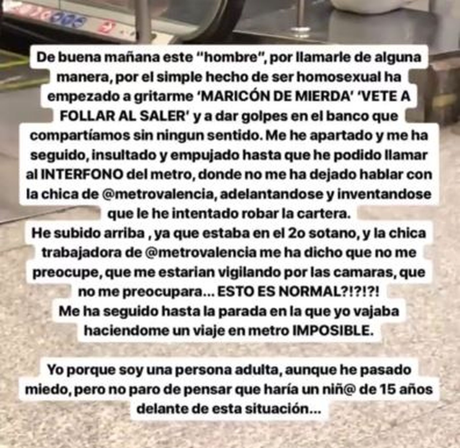 VÍDEO | Un jove denuncia una agressió homòfoba al metro de València